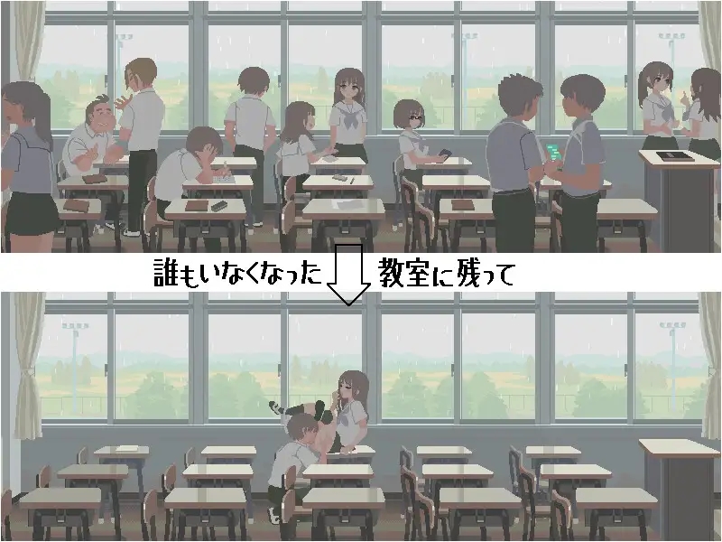 “The sound of rain echoes in the empty classroom, covering up our lewd acts together…”