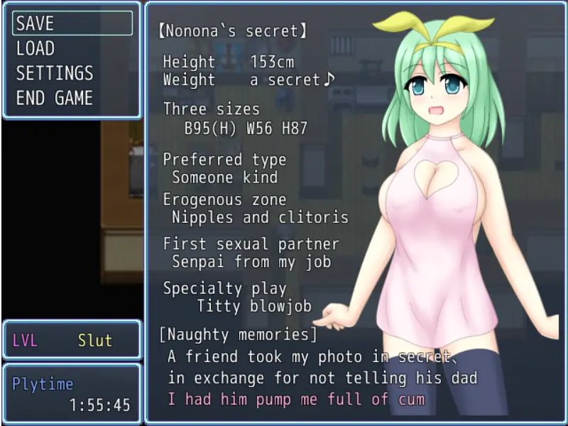 This is a short RPG in which you watch MC’s childhood friend – a big boobed country girl Nonona getting fucked by other men