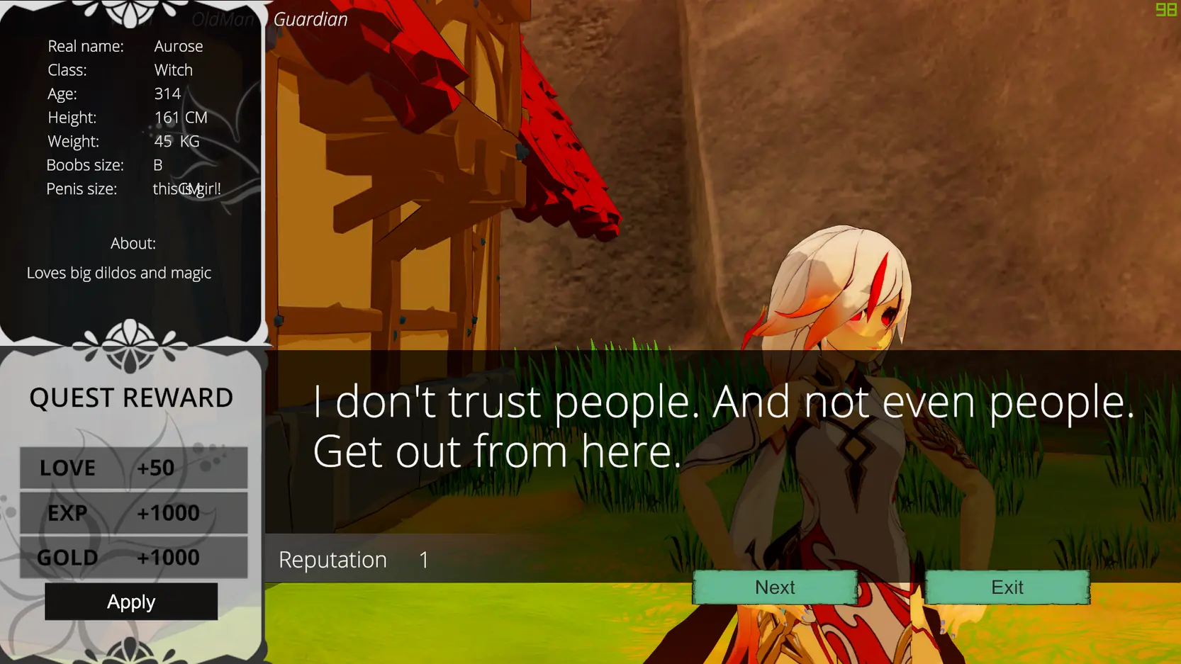 This is a 3D open world porn game. There is (or will be) a quest system, fights with monsters and bosses, pumping systems, porn animations, character customization and everything that comes into my crazy head.​