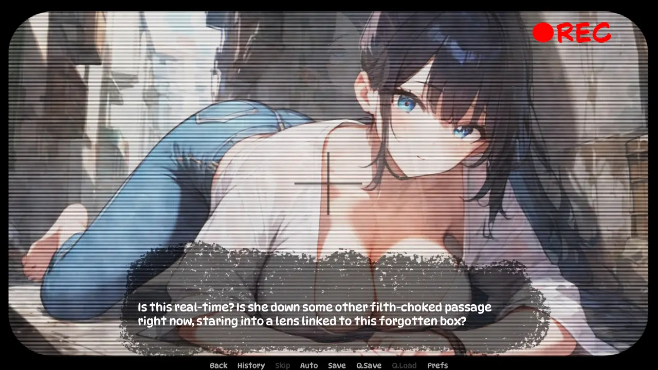 In the grunge of a future city, an alleyway draws you in. Inside is a blinking light. A monitor. A camera feed. A woman.​