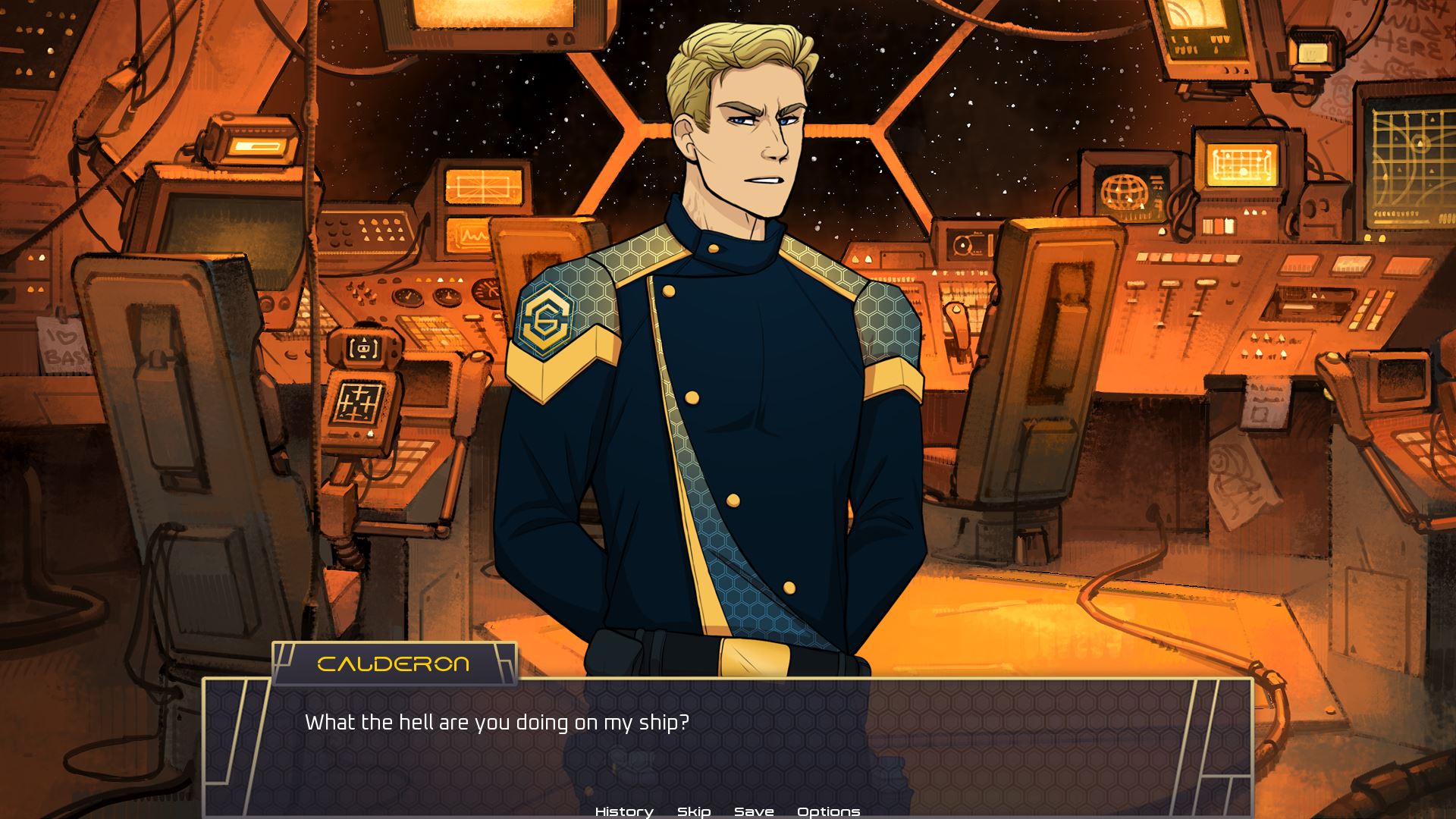 - When you get to the menu to speak with each of the crew, you’ll notice that whoever you are romancing is missing from the list. This is intentional, as in the next update there will be longer scenes available with the LI’s.