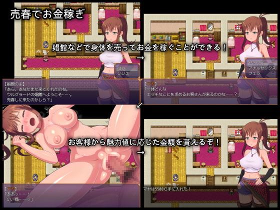 A fantasy RPG featuring a girl who earns money by exterminating monsters and prostitution to