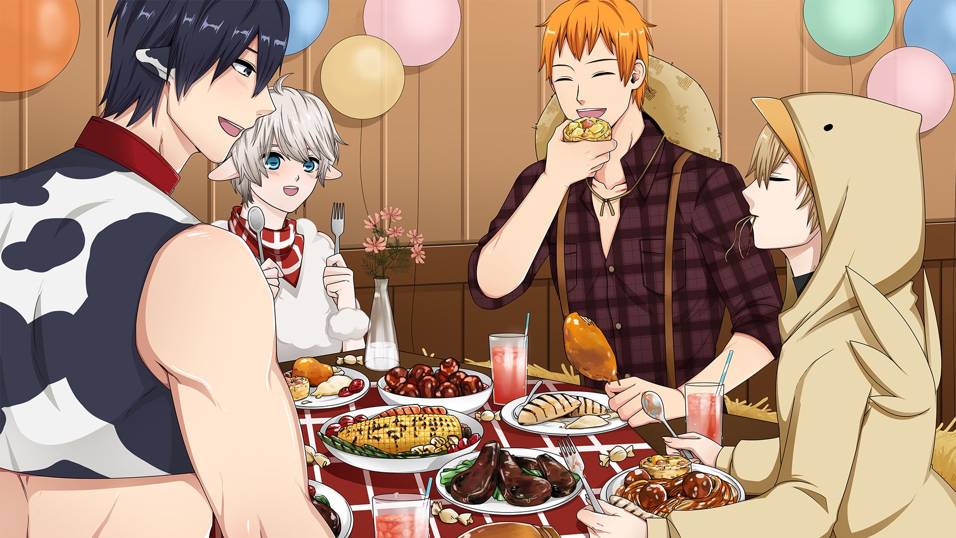 Banana Ranch is a ranch management and dating sim hybrid game. It is a 18+ game involving romance between two men. Our protagonist is called Ban (name is changeable) and he’s a country boy who used to live in a secluded village with few population. Tired of being the only young person around, he decided to move to a bigger town – Banana Town – taking a job as the ranch caretaker. However, strange thing happened during his way to Banana Town, and he was suddenly transported to a different world. The town he arrived at was still called Banana Town, but all the town citizens have somehow transformed into humanoid animals!​