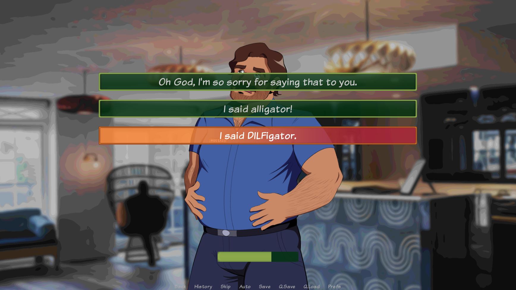 - The game will now indicate whether or not you have enough stats to make a certain choice. If you don’t, the choice will appear in red text and possibly be changed to just “???”. Clicking on the choice will have Rahmir say which stats he’s lacking and then boot him back to the choice selection. If you do have enough stats, the choice will be color coded in the stat’s color and you’ll be able to pick it just fine.