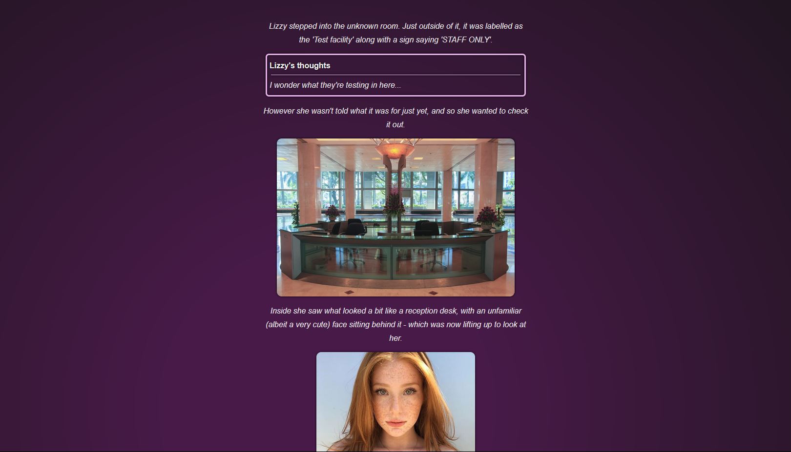 You tag along with her on this journey, except that you yourself are more akin to her subconscious, giving her suggestions and