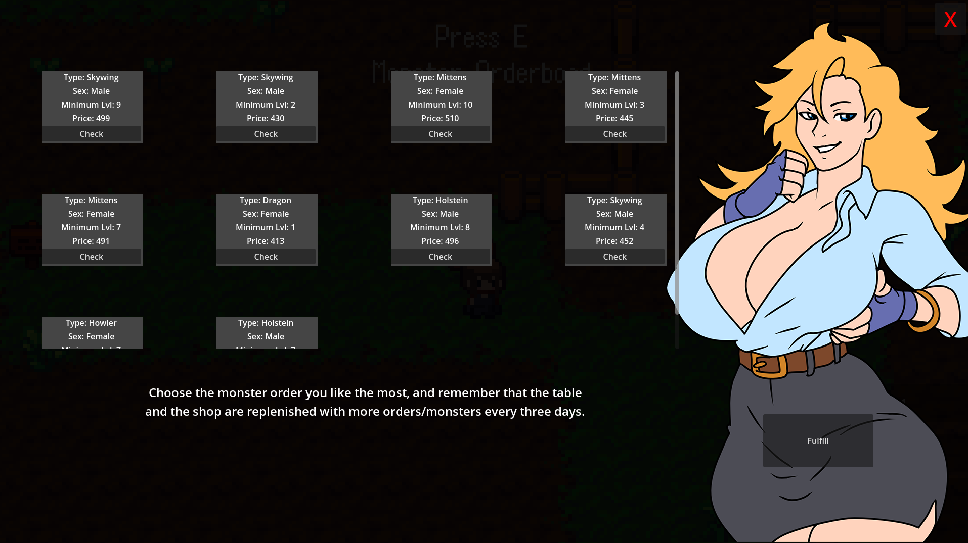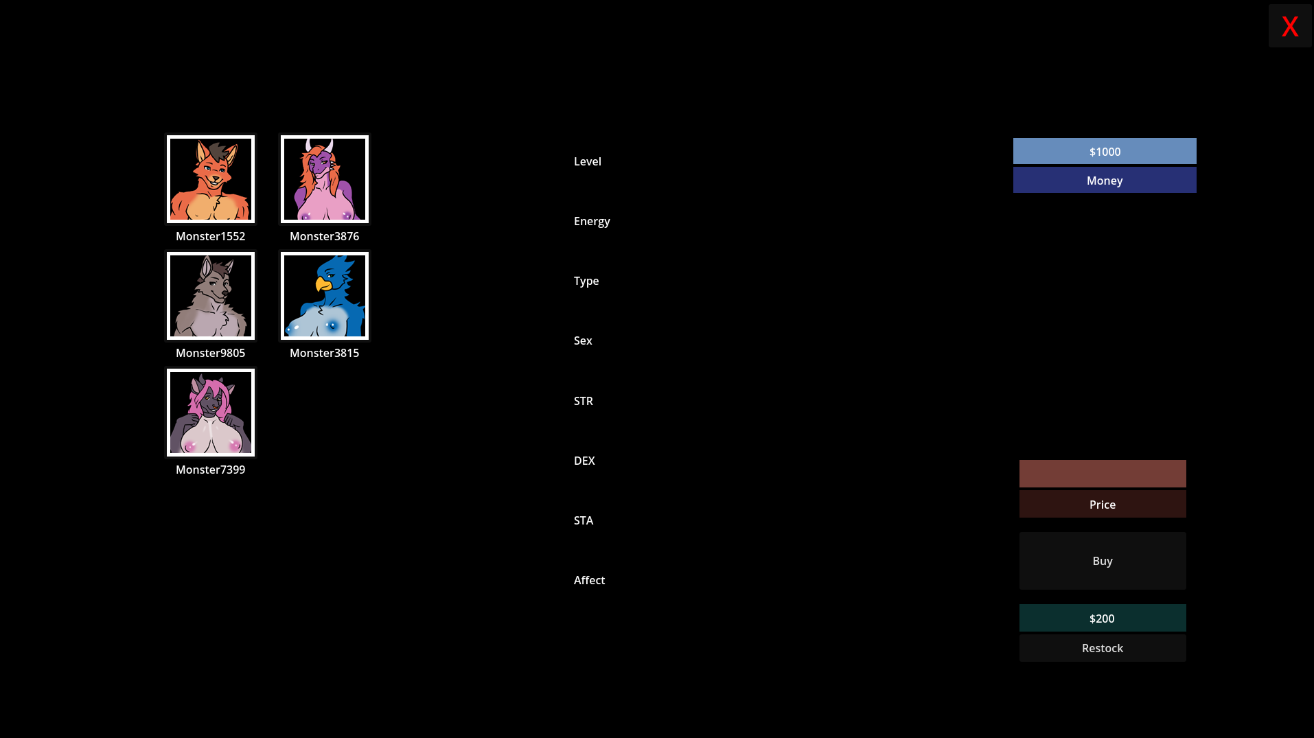Welcome to Beast Breeder, an adult-themed monster breeding and simulation game! We aim to build a breeding game with the foundation of the legendary Breeding Seasons. Currently, the game is in its most basic state, with only the main gameplay loop and a basic interface created. In the next update, animated scenes between the monsters and the player will be added. As we progress with each update, we will visually improve the game, add animations, introduce NPCs, and expand the farm and its town. Check out the Roadmap for more details!​