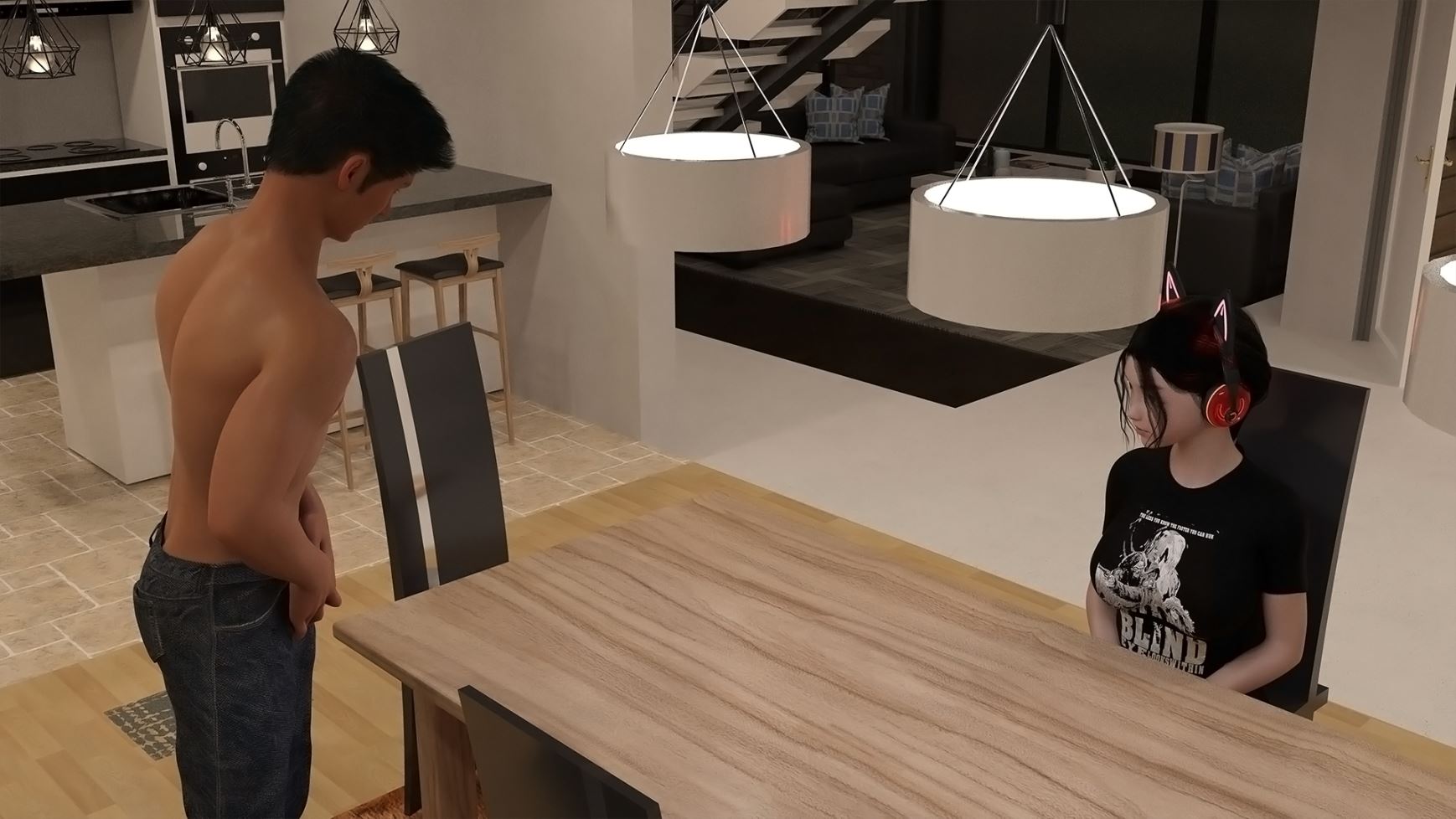Beth is locked out of her hotel room…naked. Your job is to help her make the right choices that’ll lead her to clothes without getting arrested or being seen by too many people in a short Choose-Your-Own-Adventure game with 3D Images. Includes Miku’s Strip Trivia Night.