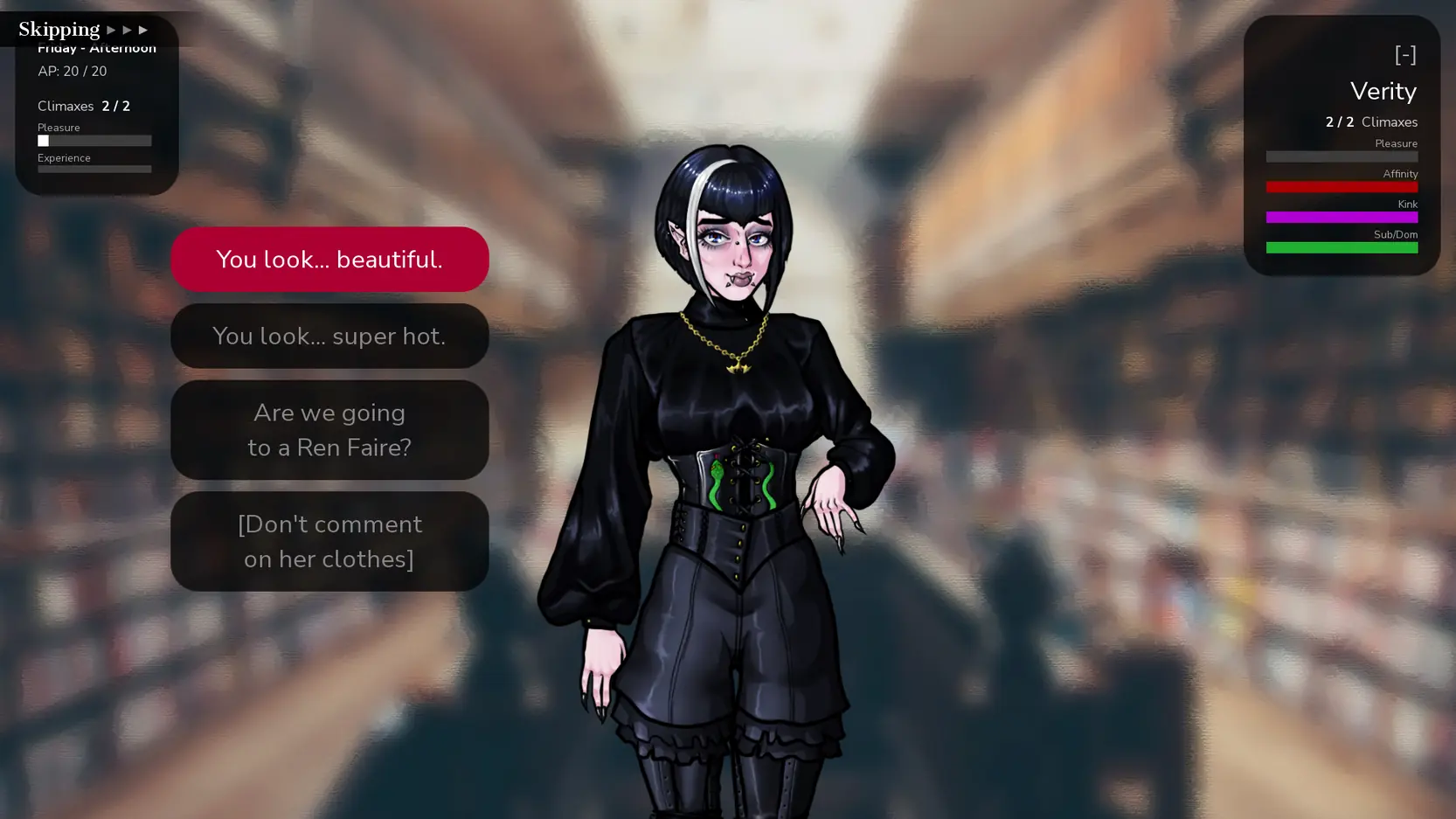 - New Assets: Verity has received a massive asset update, including 5 new full outfit sets (Bikini, Gym, Pajamas, etc.) compatible with all sex positions