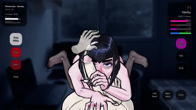 - Spontaneity System: Love Interests now track their sexual experiences and develop favorites. During sex, they may spontaneously ask (or force) you to switch positions to what they like best. You can also tell them your favorite position and sometimes they will switch to your favorite instead.