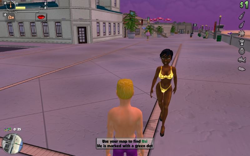 The character wakes up to a fraternity brother urinating onto the player’s face; the game then begins with a tutorial explaining how to beat up the brother. A blond woman explains to the player that the point of the game is to have sex with as many women as possible, and then performs fellatio on the player character. After finishing, a man in a suit approaches and explains that he is part of an organization called “The Man”. He warns the player that public indecency is illegal and if the player is caught, he will be arrested. The player goes through the game completing missions for various individuals in a style reminiscent of the Grand Theft Auto video games; missions include participating in pornographic films and beating up someone who believes they are Jesus.​