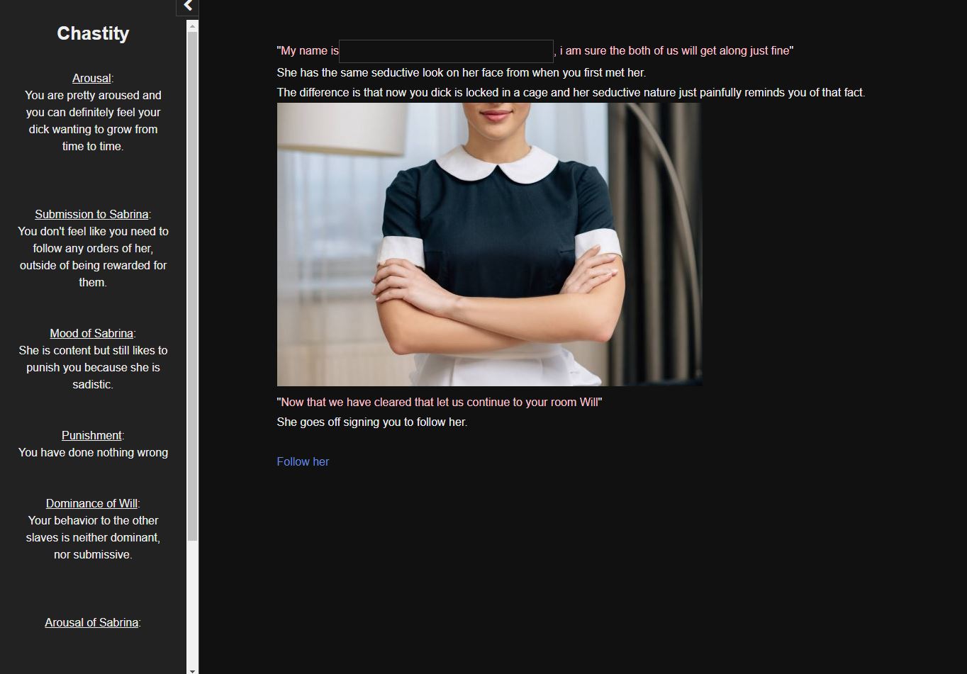 This game is about meeting a dominant woman and becoming her chastity-slave.
