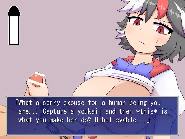 A game set in the Touhou universe, you take on the role of a freelance youkai hunter who has managed to capture a notorious troublemaker – Seija Kijin! You throw her into your sex dungeon (which is conveniently located in your house), but before you can decide what to do with her, a certain powerful figure arrives with an offer you cannot refuse… And so you have to live with Seija in order to try to reform her! And no matter how much she kicks and screams, it will be up to you to choose the sexual punishment she will receive for her constant mischief!​
