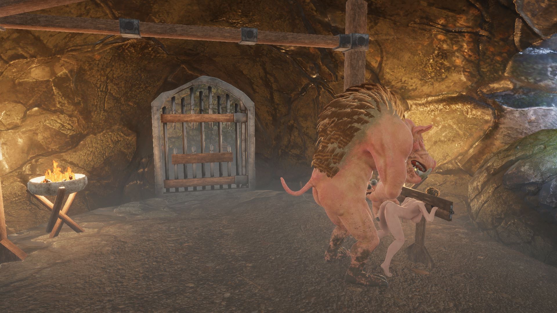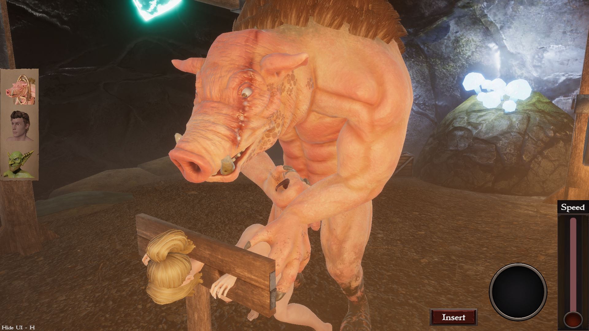 You play as one of the female slaves who were captured by monsters during their raid on your village.