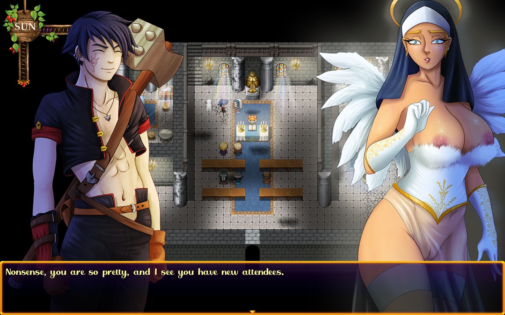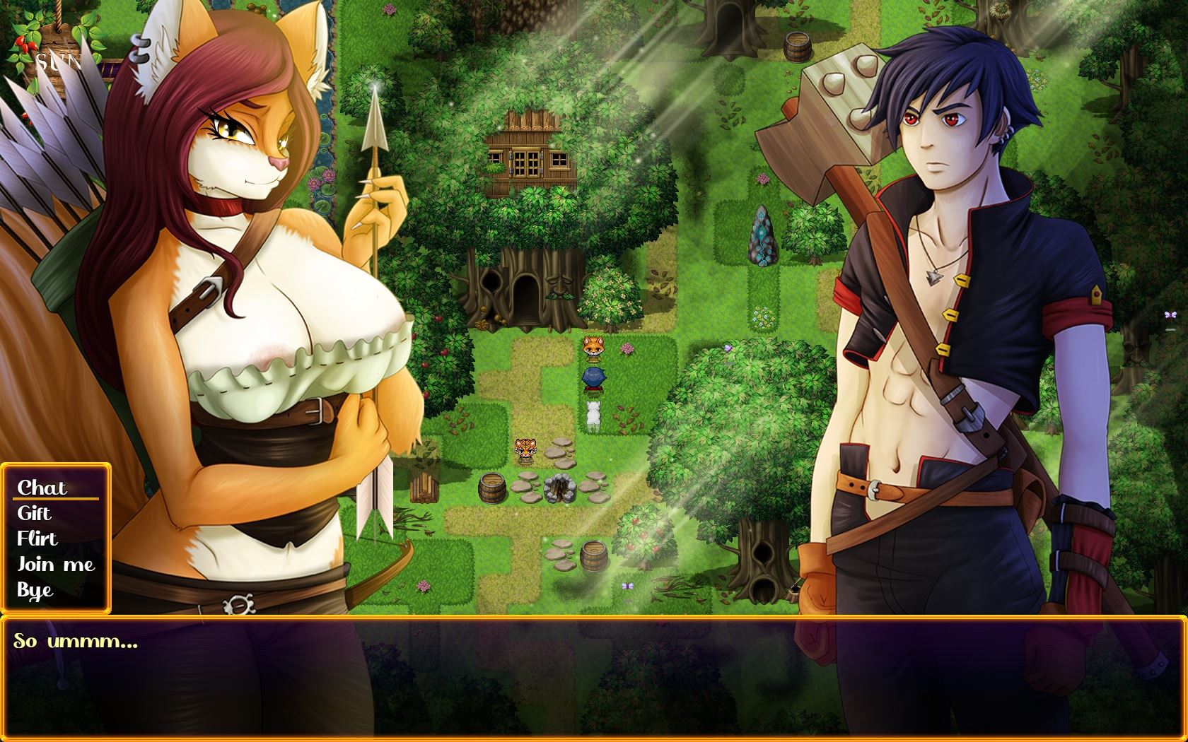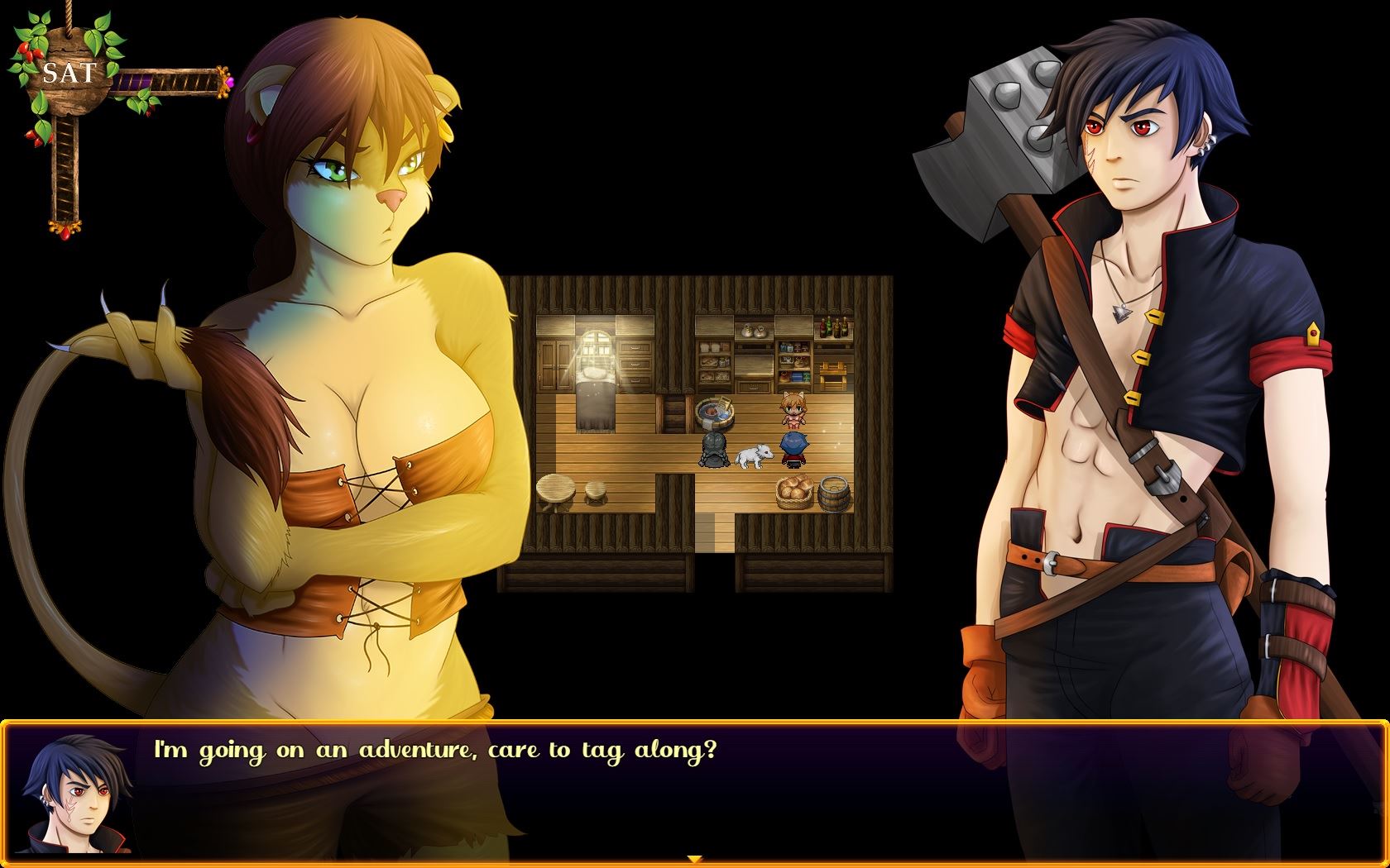 The world of Cataclyzm is the result of a mysterious cataclysmic event that has merged two different worlds into one. The inhabitants consist of Humans and Beasts, which are humanoid animals (Furry). You take on the role of a wannabe hero called Miles, an orphan boy who is raised at the village church by a busty and voluptuous nun. Great adventure and destiny await you in the vast world of Cataclyzm, where you have to battle wild beasts, meet sexy women and make hard decisions. The game is a work in progress and your support will help me deliver more content and regular updates.​