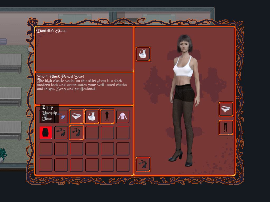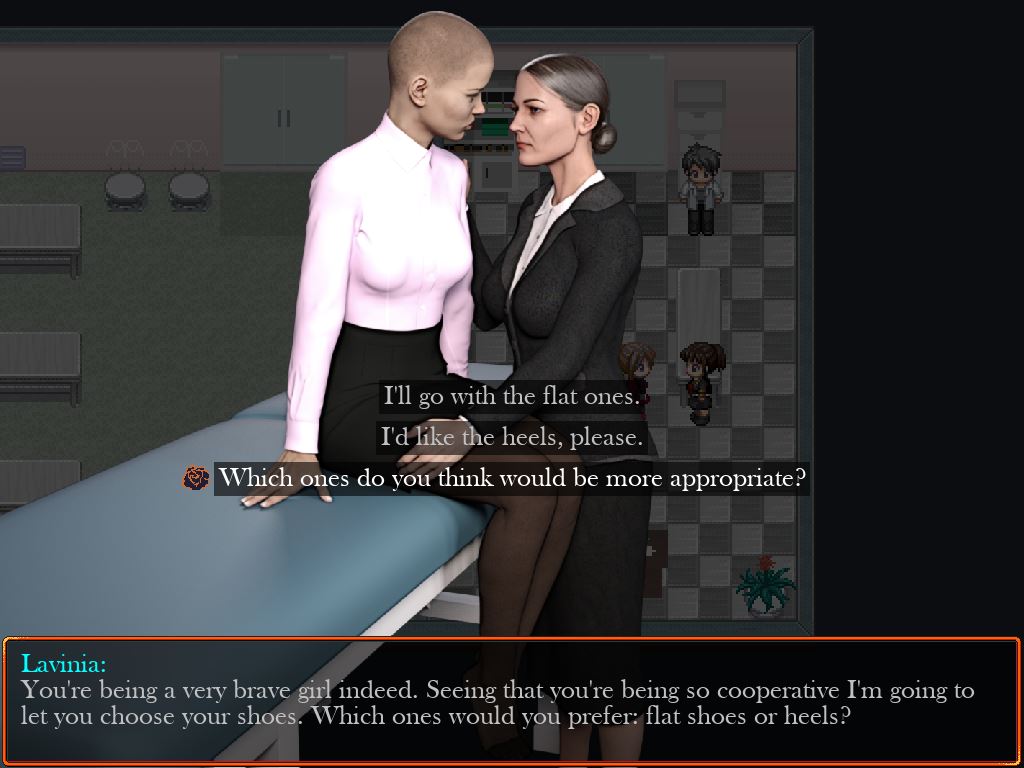 Our main character Danielle wakes up in a strange room dressed only in a flimsy hospital gown. She doesn’t know how she got there, where she is or how to get out of there. Strange people she meets underway don’t seem very inclined to shed light on the situation. At the moment, Chasm of Sin doesn’t have very much content but we hope to change that in the future as we develop our game engine and characters.​