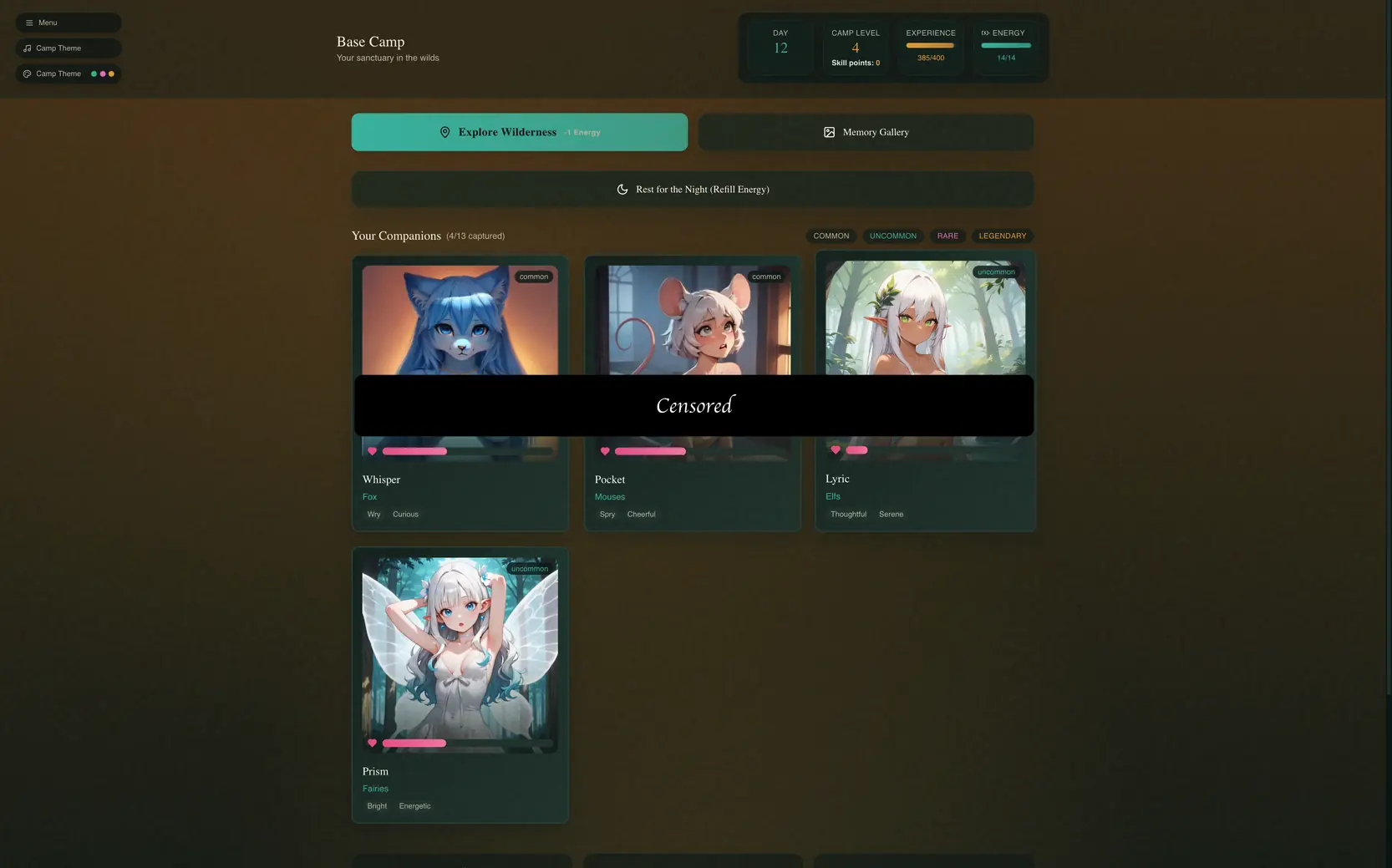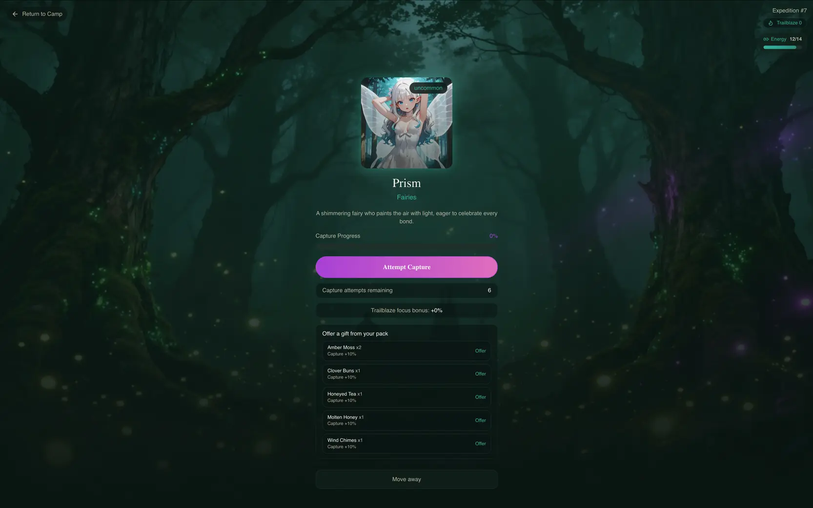 Explore the wilderness, attempt to capture wild species, and bring them to your camp !