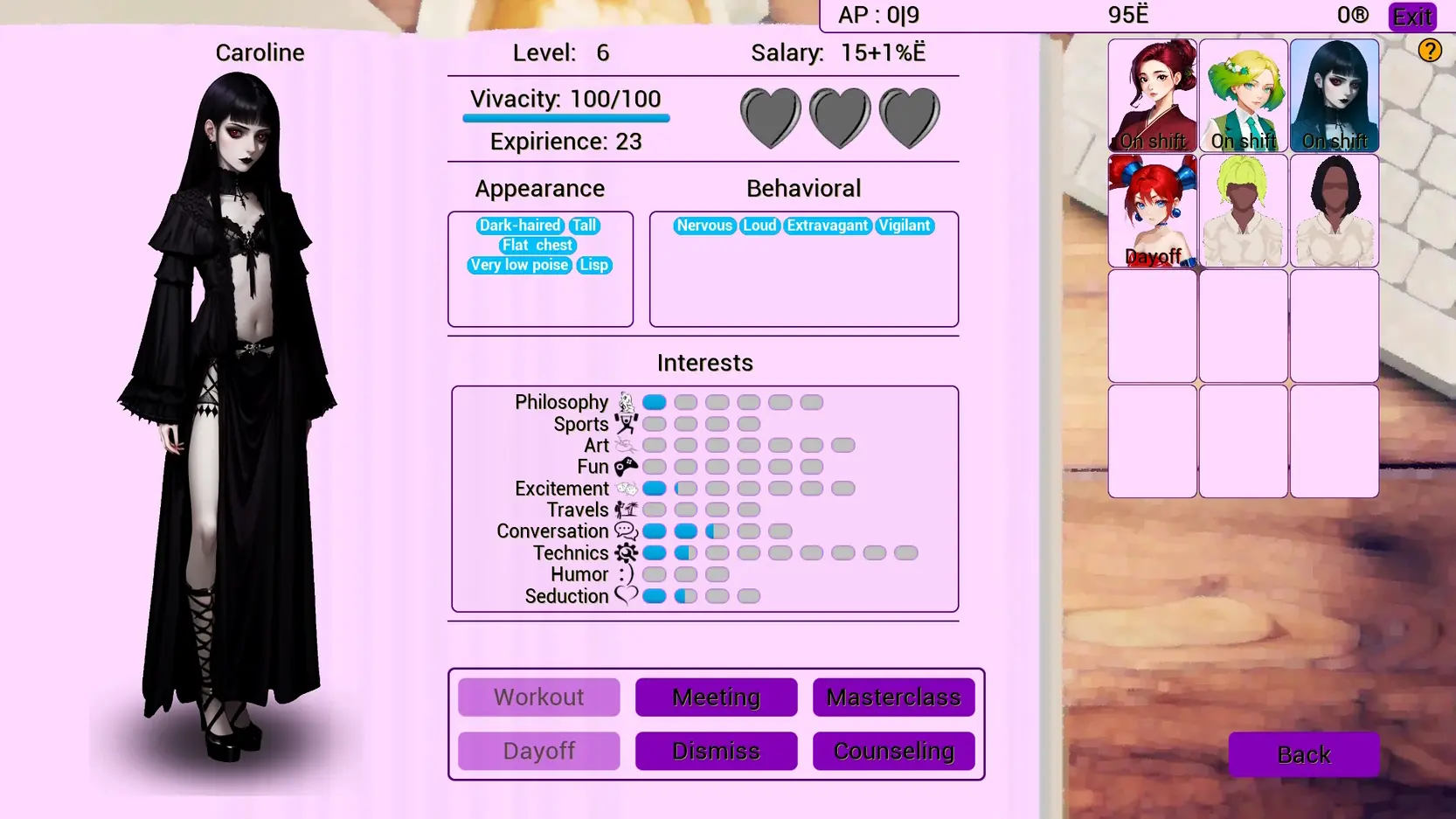 Cocktail Girl Service is a simple cafe simulator where you are a cafe manager during the day and in the evenings you get close to the waitresses, take them on dates or develop the cafe.