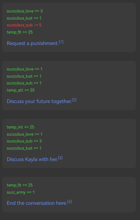 This allows you to go back to previous events while maintaining any sort of variable changes. Don't abuse this feature. You can break the game if you're not careful.
