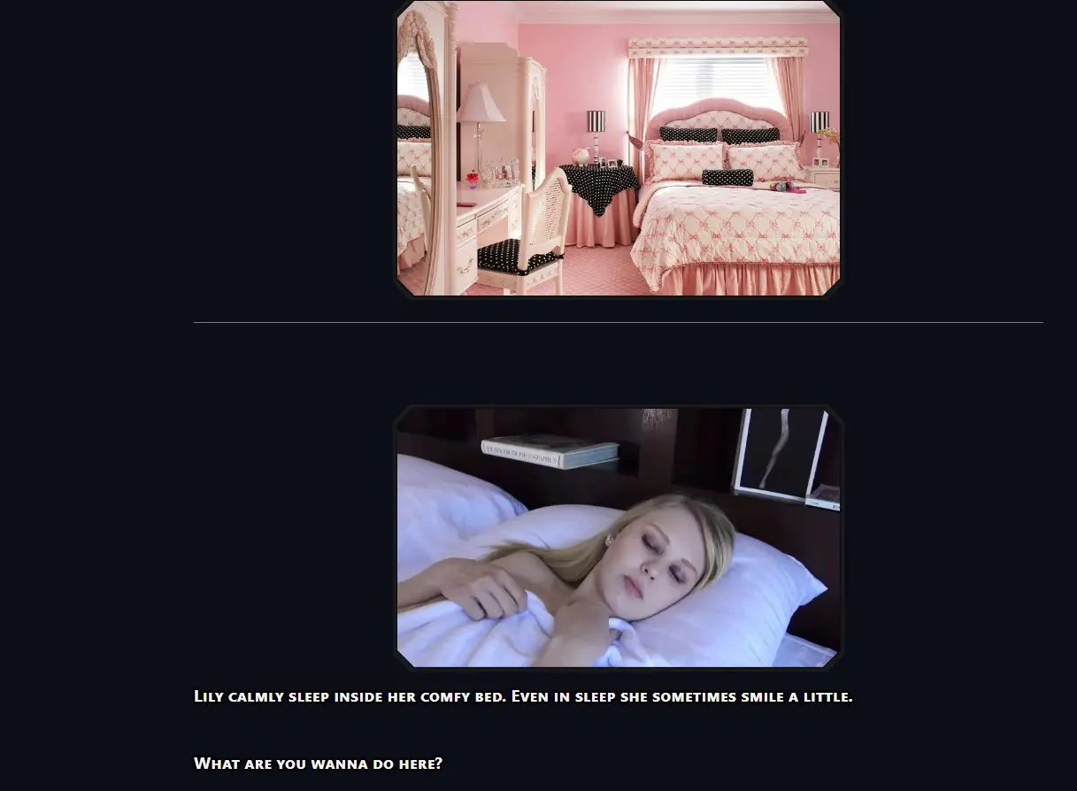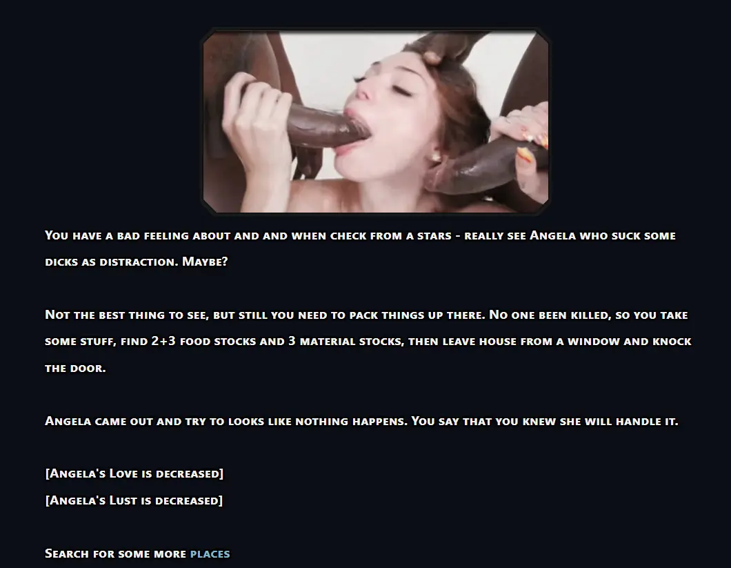 – A new location, “Den” (mostly WIP) where you’ll encounter the first (very straightforward) chain of events leading to a potential bad ending for one of the characters (content: rape, drugs, BDSM, NTR);