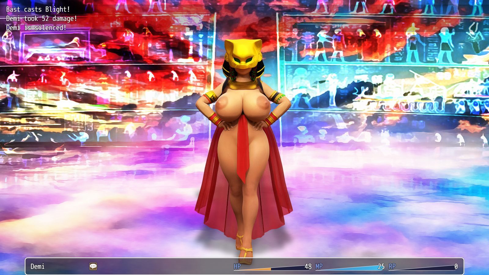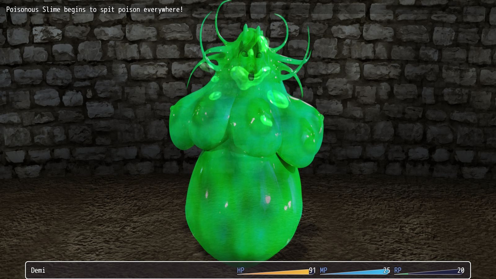 Daring Demi and the Shameless Souls is a short dungeon-crawler RPG with lots of ecchi encounters! Unlock 80 CG images! Find all the pages to the Lovers’ Atlas while you quest with Demi on her search for Eori’s Rod! Defeat monsters and add them to the Encyclopedia of Enemies. This is a soft-core game with no explicit sexual action. However there is full frontal nudity, and lots of oversized boobs.​