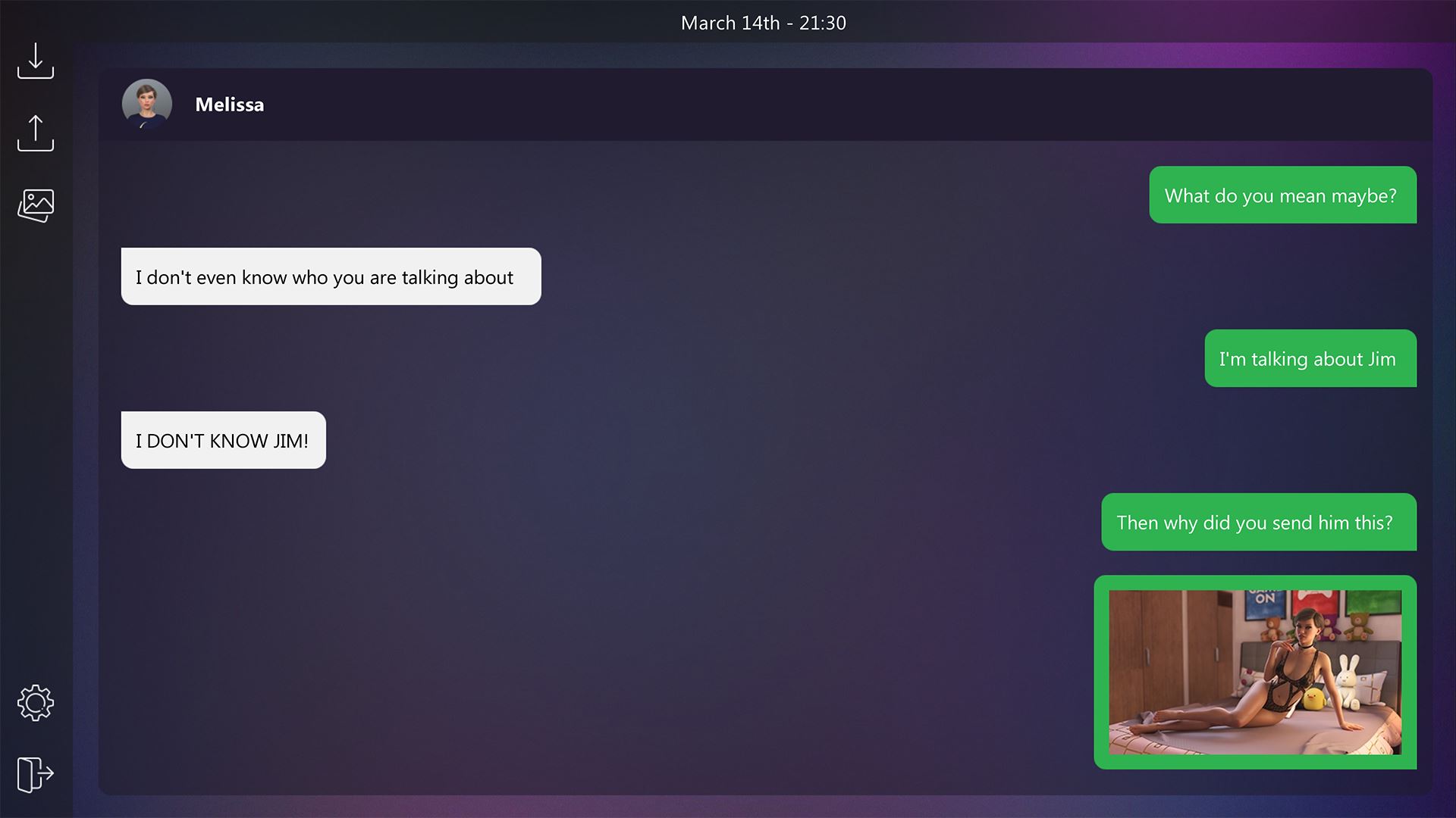 Part of the “Dirty Texts” franchise. In “Melissa’s Secret” you play the role of a man whose girlfriend’s daughter, Melissa, decided to start a JustFans page. A platform which she uses to sell sexy pics of herself. Since you’re the closest thing she has to a male role model, it’s your job to talk her out of it. Whether or not you will actually succeed remains to be seen.