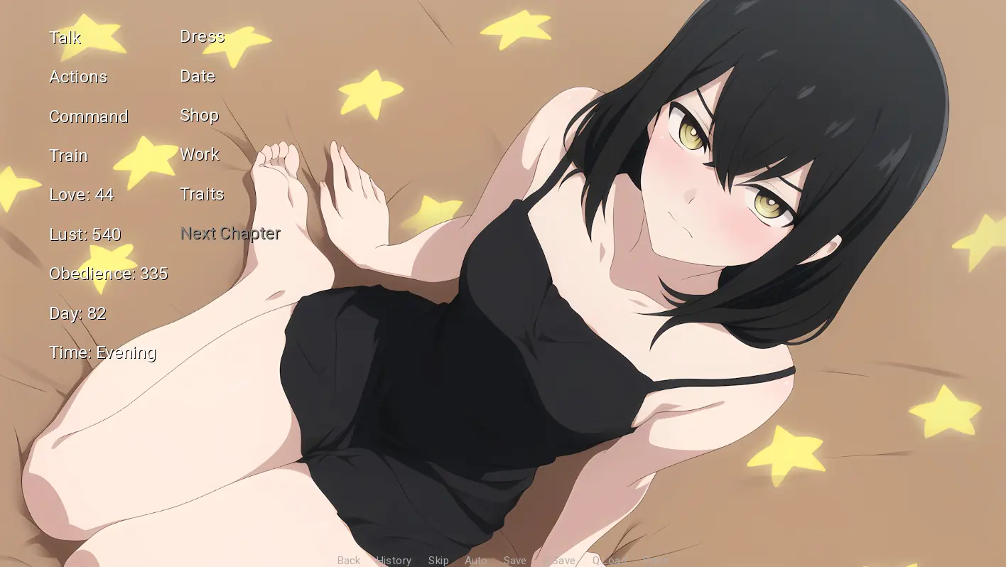 This is a slave trainer game with interaction segments and focused on replayability through different paths. You can be both male or female- there is equal content for both.