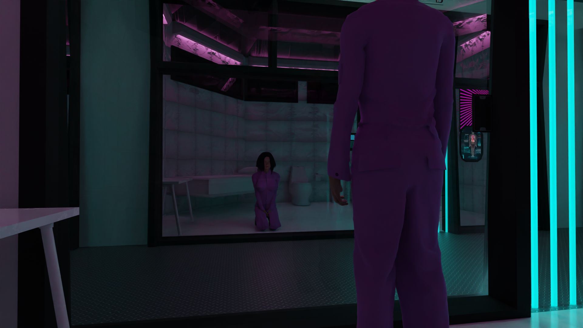 En-Fem-E No. 9 – The Factory picks up where the previous game left off. The MC finds himself in a corporate prison facility run by a nefarious company call Okama Pharmaceuticals. The MC must endure a conditioning treatment enforced by Okama. Okama is conditioning and transforming the MC to act as an agent for their master plan. The MC is eventually released into the world to collect semen (DNA) samples from target subject so Okama can finish their titular formula En-Fem-E No. 9. Porn star Autumn Rain makes a guest appearance in the final portion of the game.