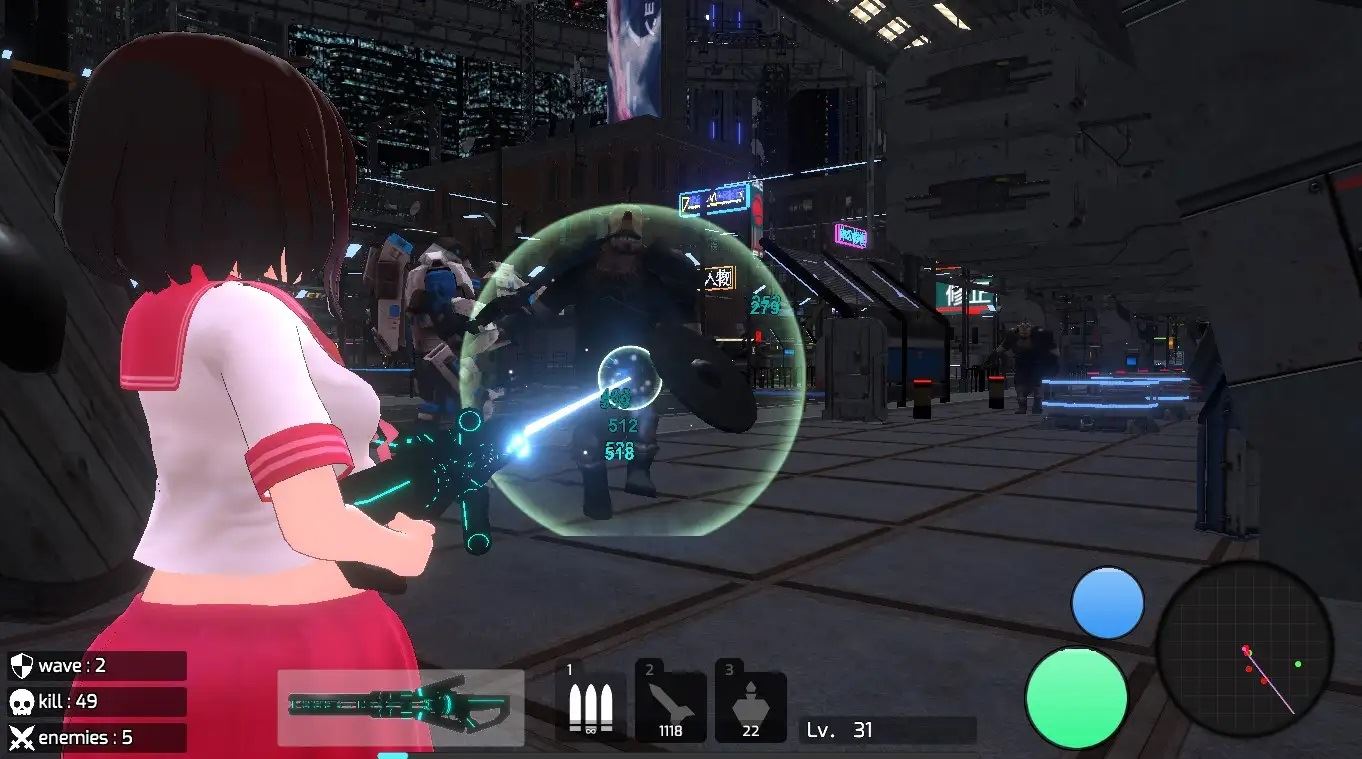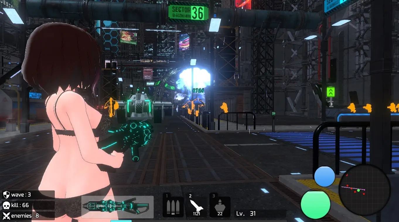 Control the girl and repel the incoming orcs. The genre is a third-person perspective shooting game. There are a total of 4 stages, including 3 types of stages and an operation confirmation stage, and there is no end to each stage. Enjoy shooting endlessly spawning enemies while admiring the scenery of the stage and the character’s chest movements.
