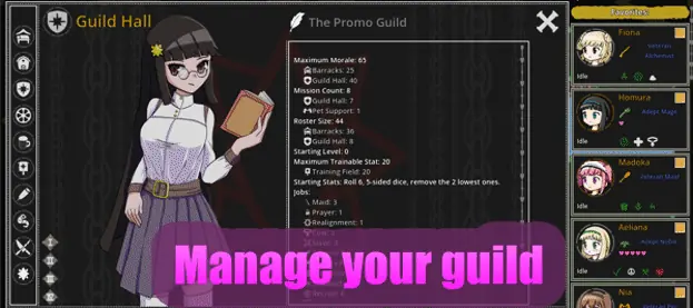 You are to establish a new adventurers’ guild in the wastes to the North. However, a corrupting miasma of unsatiable lust still seeps the soil. Send your brave adventurers (female) forth to claim these forbidden lands. But beware, lead and train them well, lest their minds and souls be corrupted by the depraved creatures of these wastes. They will stop at nothing to kidnap your daring adventurers and subject them to unspeakably lewd horrors. So expand your fledgling guild, overcome those misbegotten instruments of desire, and fight your way towards the lewdest dungeon.​