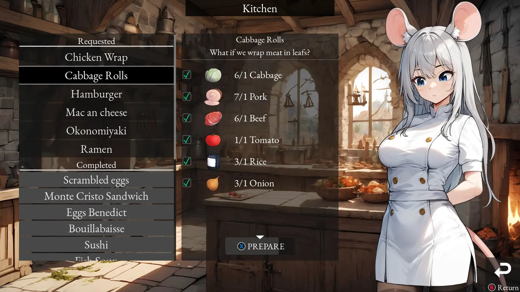 After an accident that made you retire from adventuring, you landed a safe job at the Royal Castle as a cook.