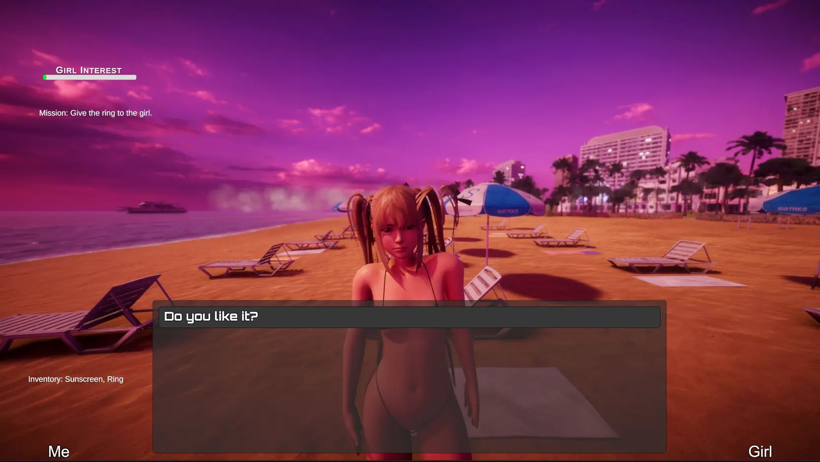 Dive into a captivating world where sun-kissed shores meet enticing encounters. In Forbidden Heat, you play as a charming protagonist who stumbles upon Lía, a mysterious and alluring girl sunbathing on a secluded beach. With a sharp wit and an air of indifference, Lía initially pushes you away, but your determination to connect with her sets the stage for an unforgettable journey.