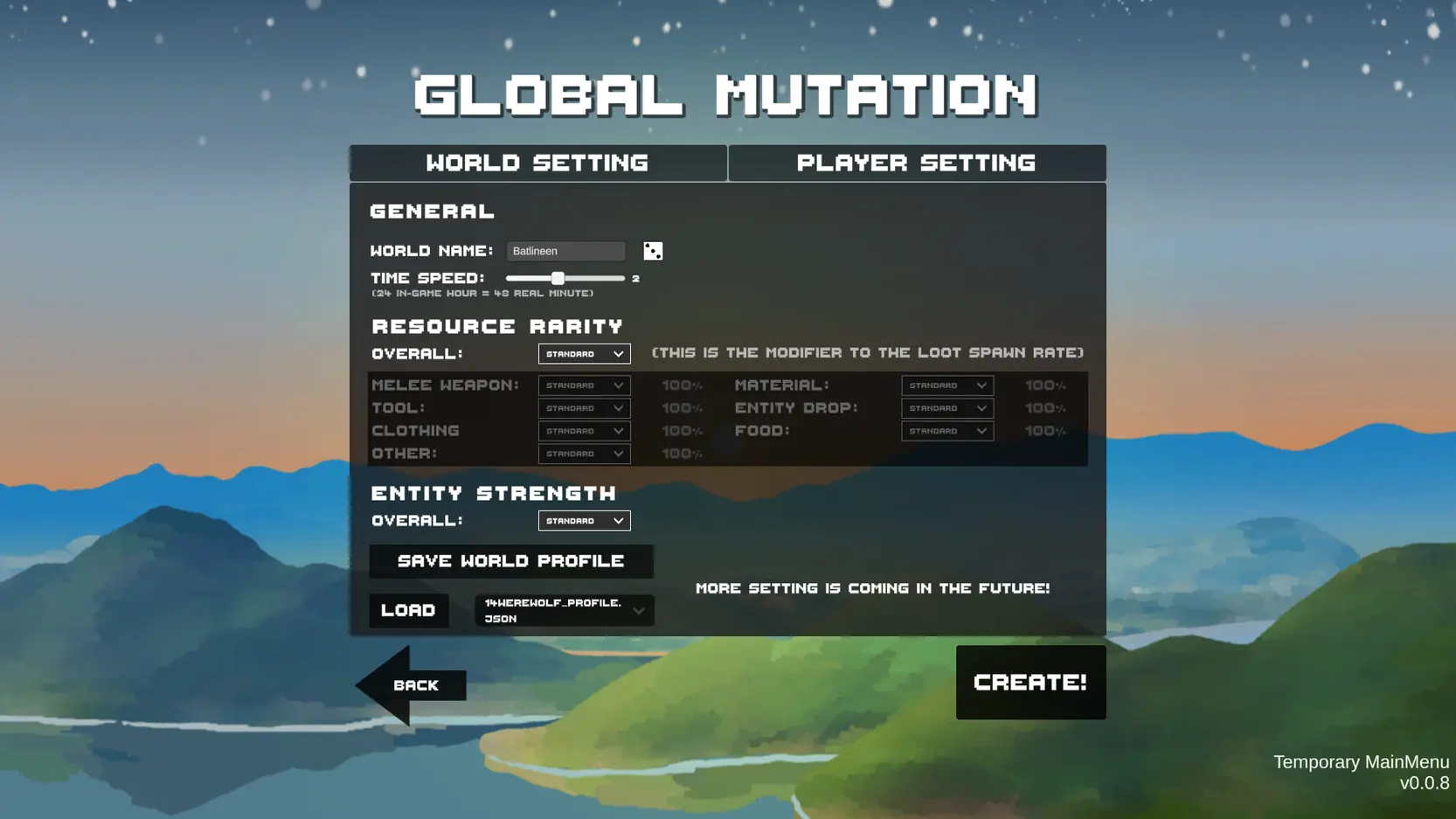 – Added a toggle in the world setting to skip the intro story