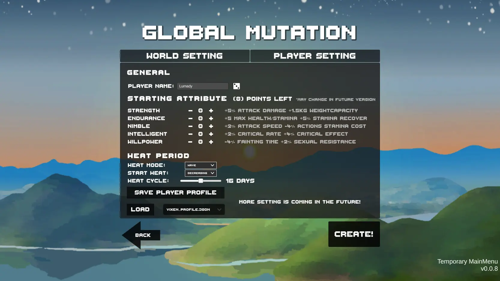 – More customized options on the player character