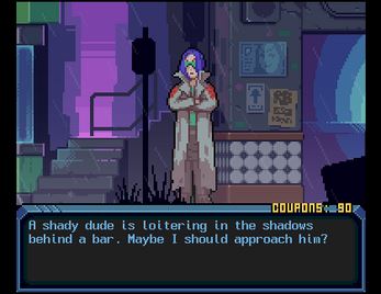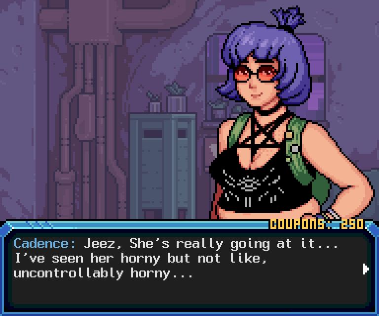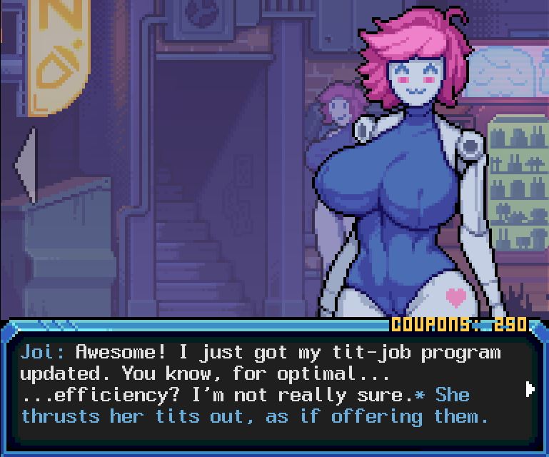 Hardcoded is an open-world dating-sim, set in the lawless reaches of a cyberpunk dystopia, in which you take on the role of a thinking/learning droid who has recently escaped her owners and is on the run. Before you can fully settle into your new life, it becomes obvious that Pira City is a place of dark and dangerous secrets. Fortunately, you’re able to befriend a cast of very horny characters who seek your aid in pursuing a shadowrun-style investigation. You can spend your down time trying to establish yourself, by earning money, decorating your apartment, buying clothes, collecting sci-fi dildos, or working on turning friendships into romances.