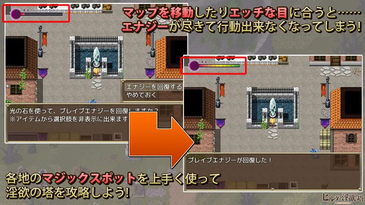If the hero’s magic runs out, Hilda will become unable to act.