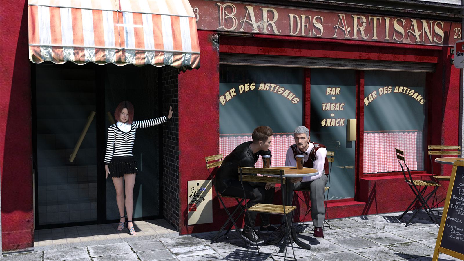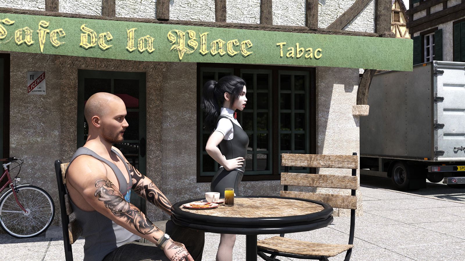 The game is set in an European town, your Uncle used to be a big shot there and you visited him a few times as a kid. He is retired now and mostly sold up but he still owns a cafe and a hostel, so you get free food and a free bed. The reason it’s called Hustle is you essential have no money and are to lazy to work for any, you have a few dollars to buy a joint and a beer now and again but that is about it, you need to hustle everything else. You come across a variety of girls and the only way to bed them is to help them out, so you have to hustle whatever they need, or you need, to bed them. It’s based on a fetch quest idea, to bed a girl you have to give her something, get her something or do something for her, but its not that simple as what you need to get has to be hustled from its owner, who in turn will usually want something in return, so you will need to hustle what they want and so forth until the circle completes. It will be easy at first but the chain of hustles will get more complicated as the game progresses. Each release will be a stand alone chapter that leads to the next chapter, although the story will progress, each chapter will have no bearing on the other except in one sense (I’ll explain in a minute), they will intertwine for sure, but any decisions/paths you need to take will only have a influence on the chapter you are playing. You can’t actually lose/die/fuck up, you just won’t finish the chapter. The one sense I mentioned comes into play here, unless you finish the first chapter you won’t be able get any progress in the next, you can play it but you will just get stuck as I will leave out an important element from the first one.​