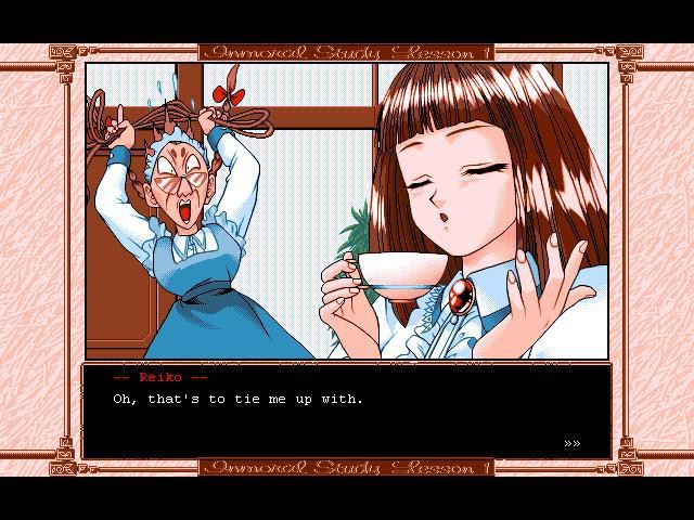 You are professor Hitosuji, a well-known teacher who possesses the remarkable gift of turning weak students into straight A ones. What’s the secret of professor’s method? As you might have suspected, the talented professor uses somewhat… ahem… unconventional means to attain this noble educational goal. This time, the “victim” is a young innocent girl named Reiko Shirakawa. She attends an all-girl and has never had any real contact with men. Controlling the cunning professor, you must seduce Reiko by selecting correct choices that are presented to you at almost any given point, avoiding disturbances such as the ugly housekeeper in Reiko’s house.