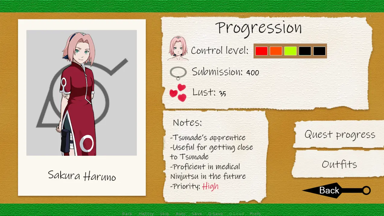 Never having achieved much in Konoha, you suddenly find yourself back to the past. With the help of the mysterious Saru, you unlocked the power of your clan and gained the ability to turn others into your followers. You will have have to track down and indoctrinate key kunoichi that will be useful in your quest to revive your clan.​