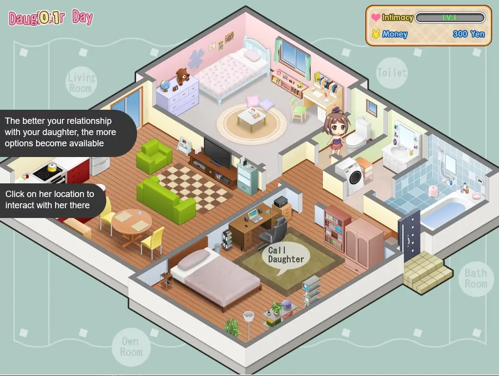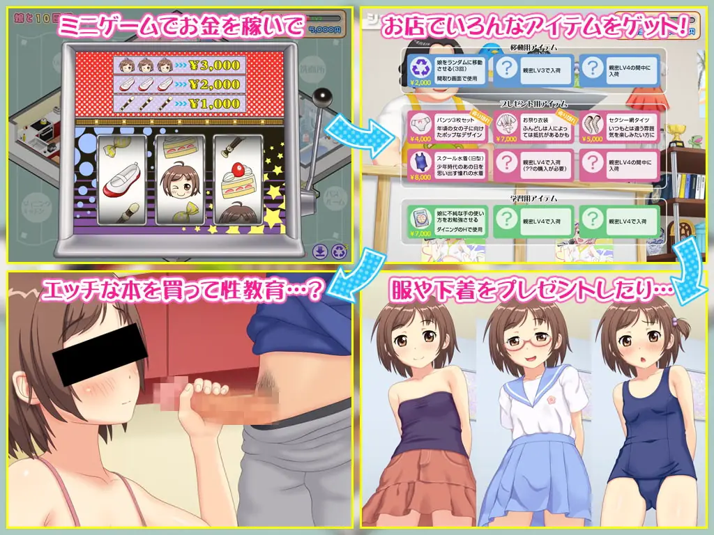 Have you ever wanted to have a daughter and live alone with her? Hang out, talk, give her presents (including underwear!), and even get nice and cuddly together… Go ahead and touch her! How are you supposed to deepen your relationship?