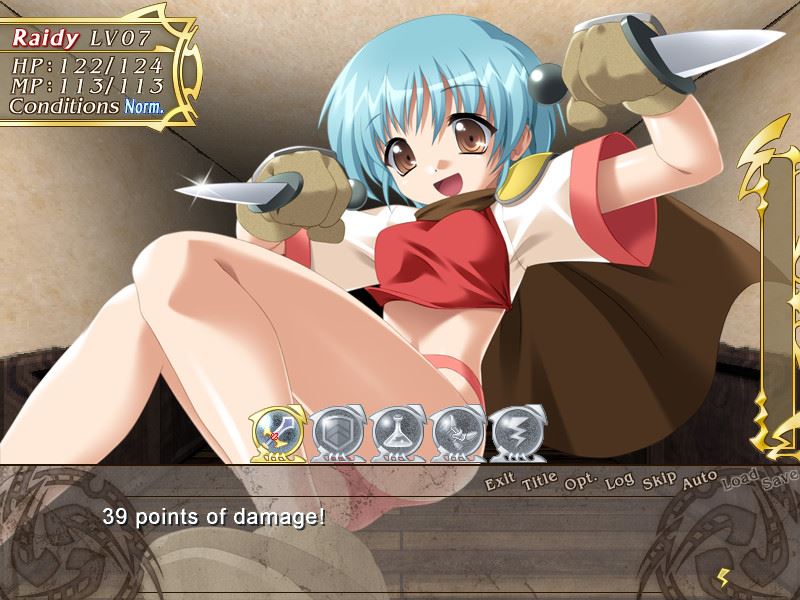 “Ugh… desert travel is terrible on the skin, let me tell you! Why did I ever choose to come this way… If I don’t find water soon it’s going to be troublesome. Wait, what’s that in the distance – an oasis?! And a town next to it! Civilization at last…” I am Raidy, wandering the continent of Else as a swordfighter. I can freely bend the power of thunder to my will, so people have taken to calling me the “Lightning Warrior”. I’m traveling far and wide to improve my fighting skills and search for clues about my past, and my mysterious power over lightning. After defeating the monsters in the Cubust tower in my last adventure, I left the village of Sadd behind and continued on my journey. My travels have taken me across the desert to the oasis town of Lake Blue. Looking forward to a break after the long and dusty journey, I settled in for the night at the local inn… only to have its peace shattered by the cries of the young, beautiful innkeeper! I rescued her from her mysterious assailant, to learn that the town was living under constant fear of attack from a gang of marauding bandits led by a cruel woman called Jammy. It seems my vacation won’t be so uneventful after all! I set out to find information on the gang’s hideout, and a new adventure begins…​