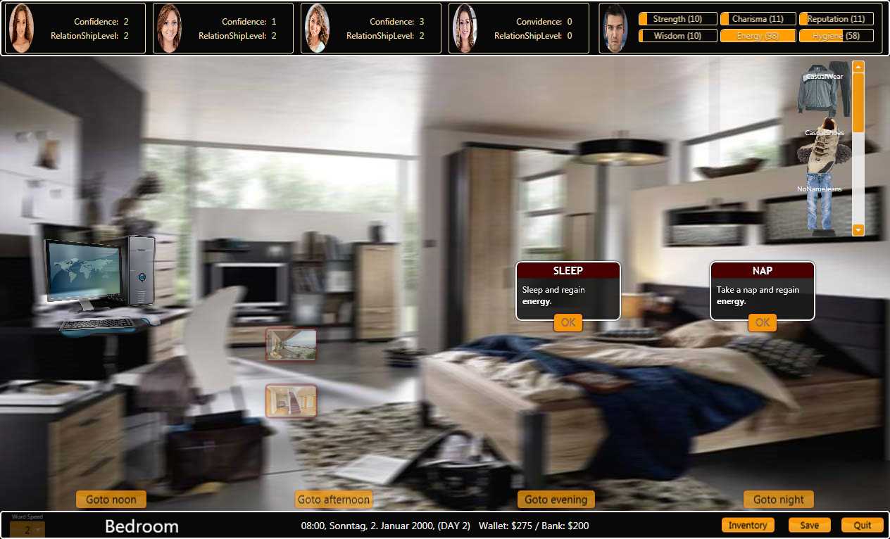 “The protagonist is Tom, a boy who does live in a flat-sharing community with three women. Tom wakes up on New Year’s Day in the morning with a wild dream and has to realize that the whole thing wasn’t a dream after all. Tom can’t remember almost anything about his roommates. He has forgotten their names and other things. Tom still has to go to high school, but he also has to work on his looks. But there is the park for jogging or the gym or the swimming pool to go up the strength. Or go to the hight school for up the level of wisdom. Cleanliness and hygiene are important. But that alone won’t help you succeed with women. ”