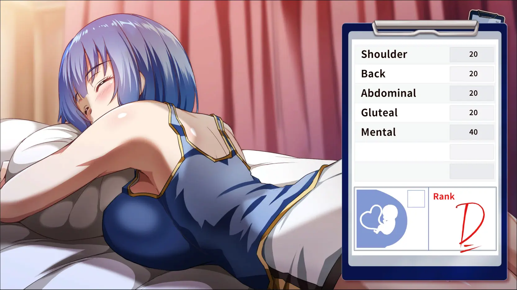 Love Relaxation is a dating sims. This spring, you meet a young girl who has suffered a severe injury during basketball practice. As a professional masseuse, you decide to help her recover. As you spend time together through massage therapy, your feelings for each other begin to grow…​