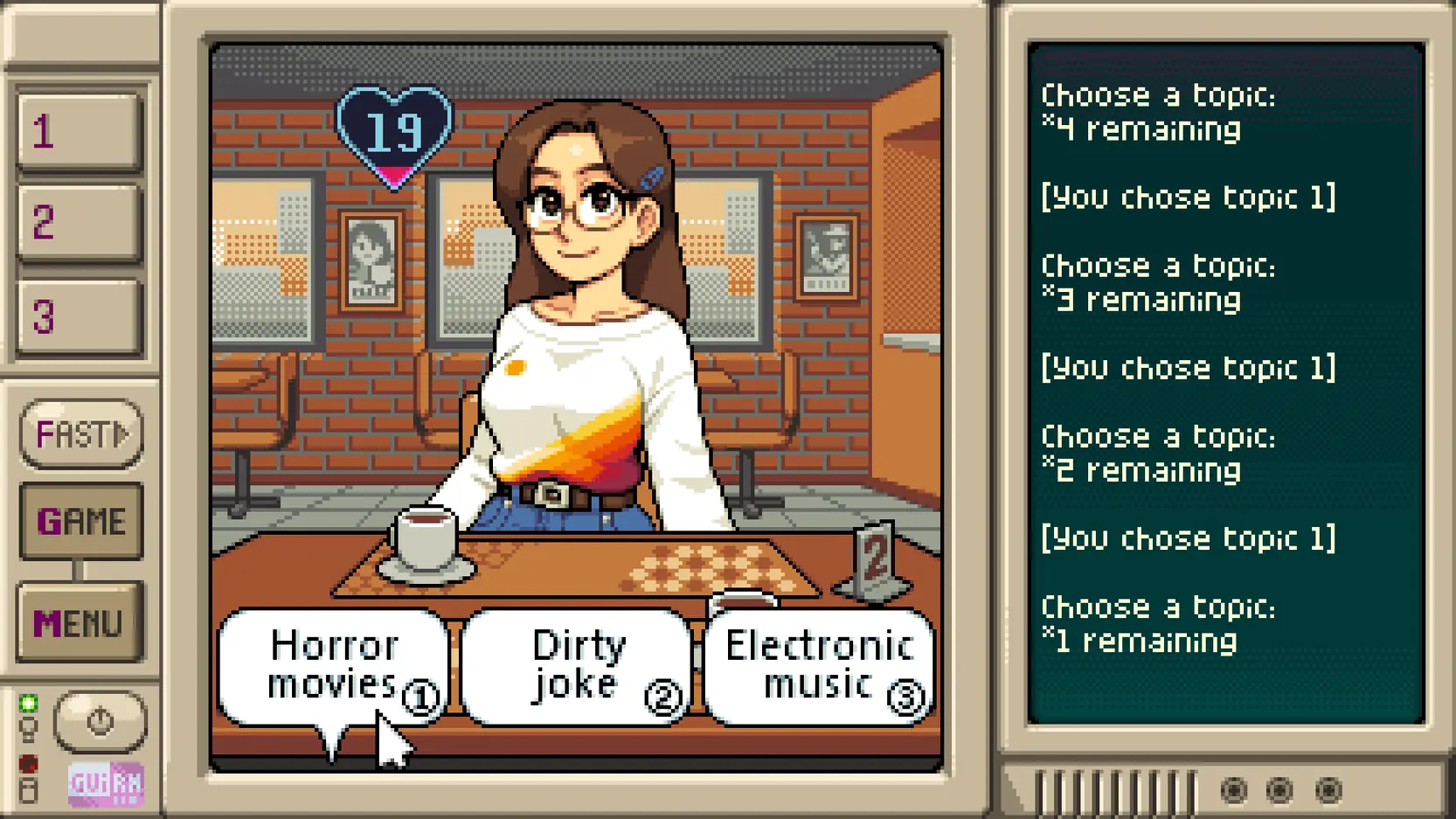 This is the public demo of the Love:99 story game. In it you can play through the first month of the game and get involved with the first partner to be introduced: Lisa.