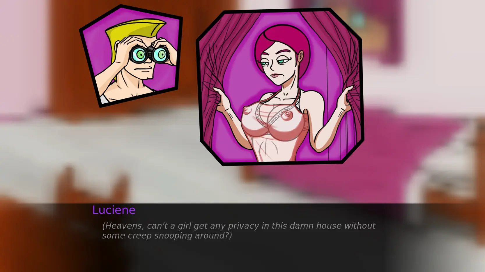 You play as Luciene, a woman in her early 40s who suddenly has to take care of her best friend’s three adult kids while the friend spends a few months in Europe. That’s it. That’s the entire premise. (it could go anywhere from here) But inside that house… everything is allowed to breathe. You can spend an entire in-game day just doing chores, sunbathing, yoga, taking long baths… and every single one of those activities (or most of them, for now) has a chance of someone watching you (or you watching them).