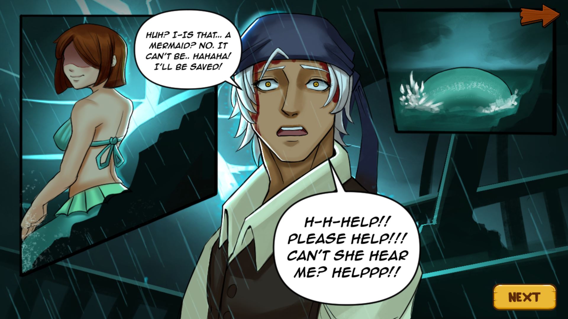 You will take on the role of Hunter, a pirate who went ashore to relieve his sustenance. But an unexpected storm hit the sea, causing the wreckage of your beloved ship. You prayed to the gods to send any kind of aid and help you from your current dilemma.