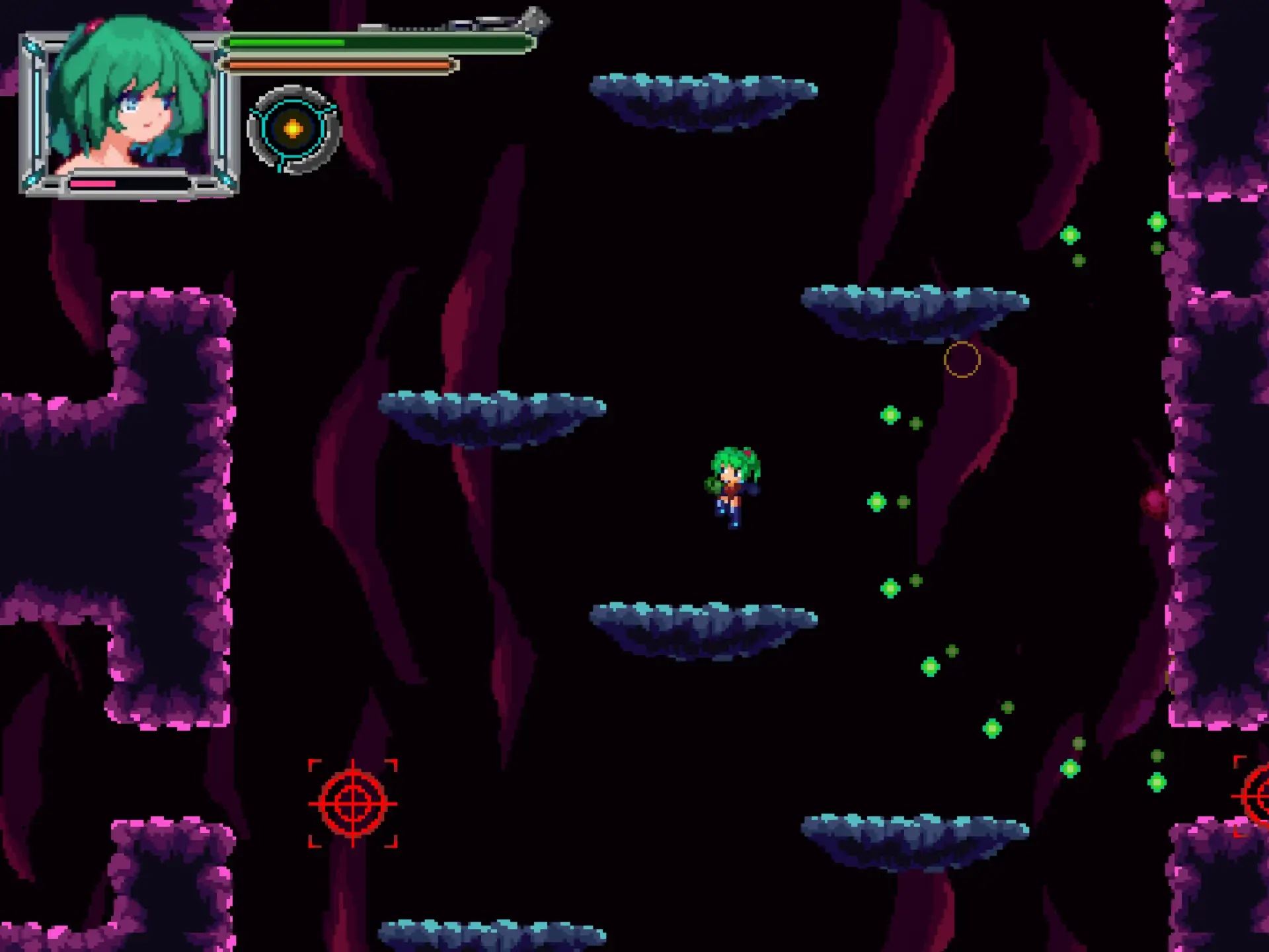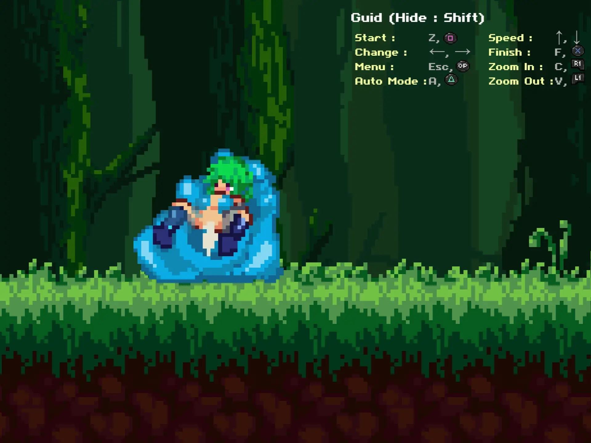 This is a side-scrolling exploration type 2D dot picture action shooting game. You will explore the main three research areas, defeat monsters, obtain items, and explore. If you are attacked by enemies and fall, they will gather to take advantage of the opportunity to do naughty things to the protagonist! Whether to resist or give in and become the toy of the monster’s desires is up to the player!