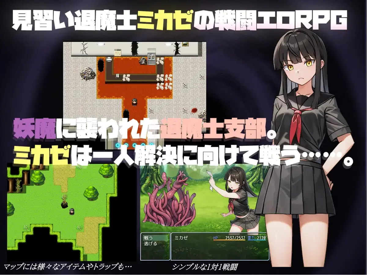 Mikaze, a young apprentice of the Exorcism Association, dedicates her days and nights to battling “youkai.” One afternoon, while resting at the association’s branch, she finds herself caught in the chaos of a sudden youkai invasion. With the protective barrier rendering others powerless, Mikaze is the only one capable of fighting back. Determined to eliminate the source of the attack, she ventures out alone to confront the enemy.​