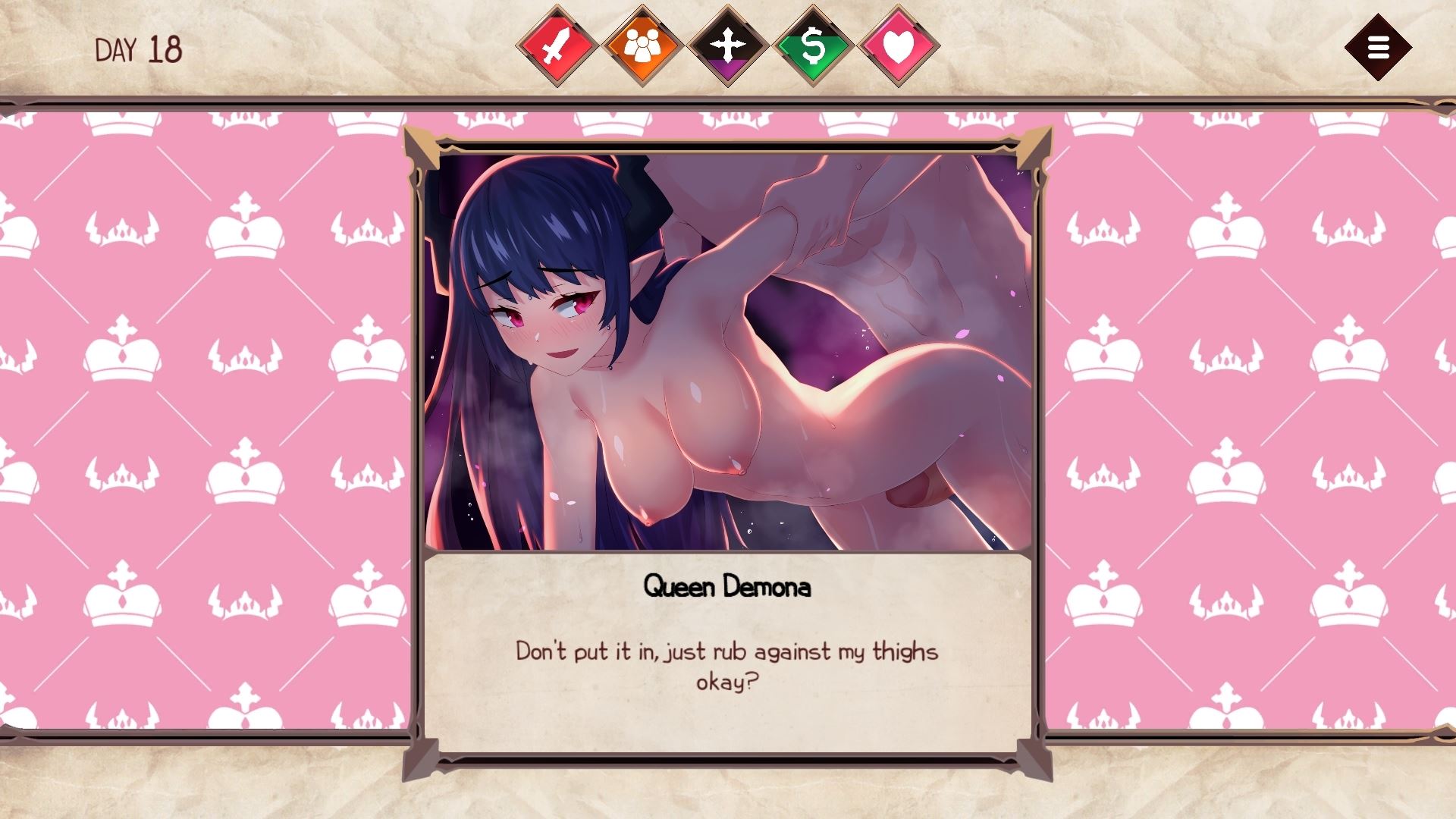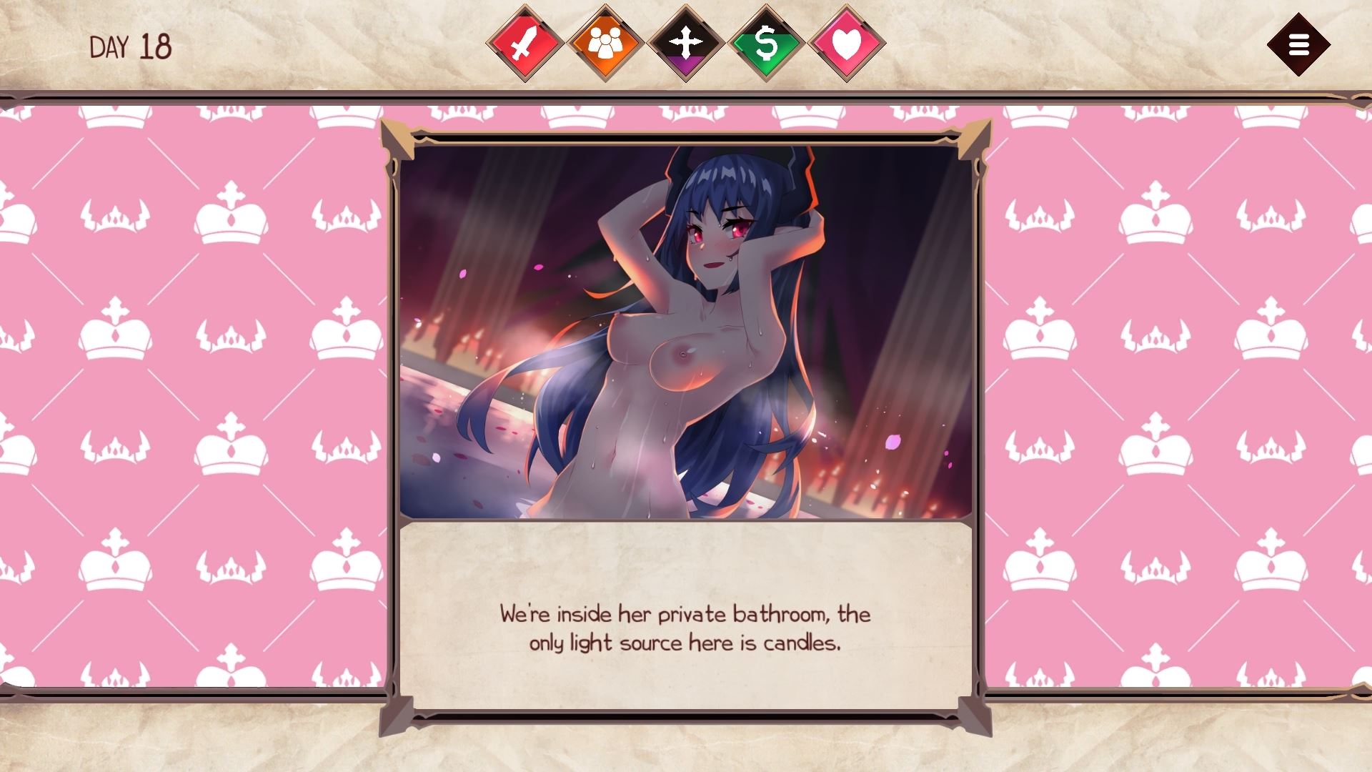 The girls will ask for your opinion on everything, you decide, every choice affects the status of your kingdom. Your goal is to keep the balance of 5 factors that represent the state of the country, if one of them reaches
