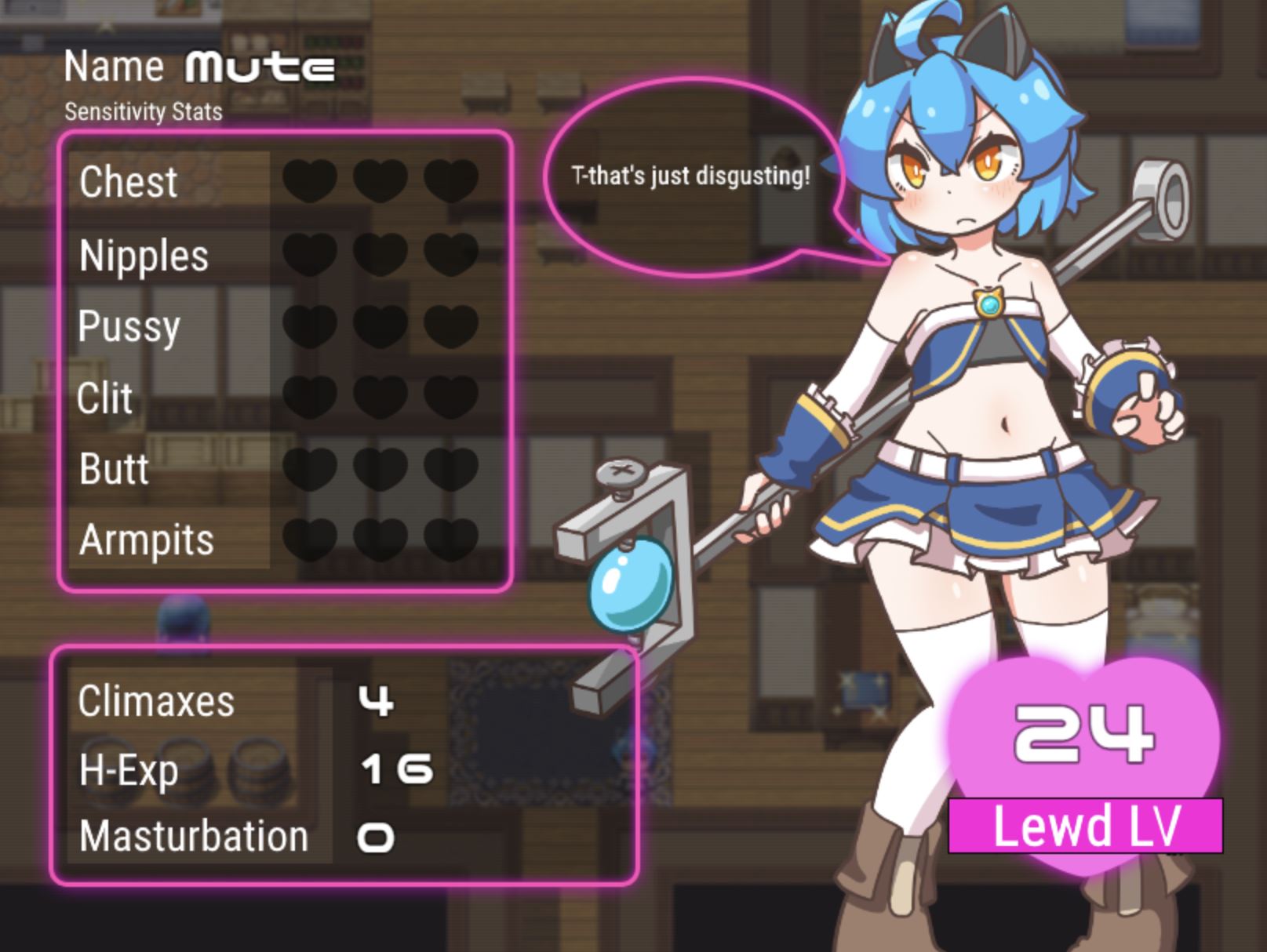 It’s a simple RPG where the magical girl “Myute” conquers a lewd Drain Dungeon! The game features a heavily deformed art style and focuses primarily on battle H-scenes.