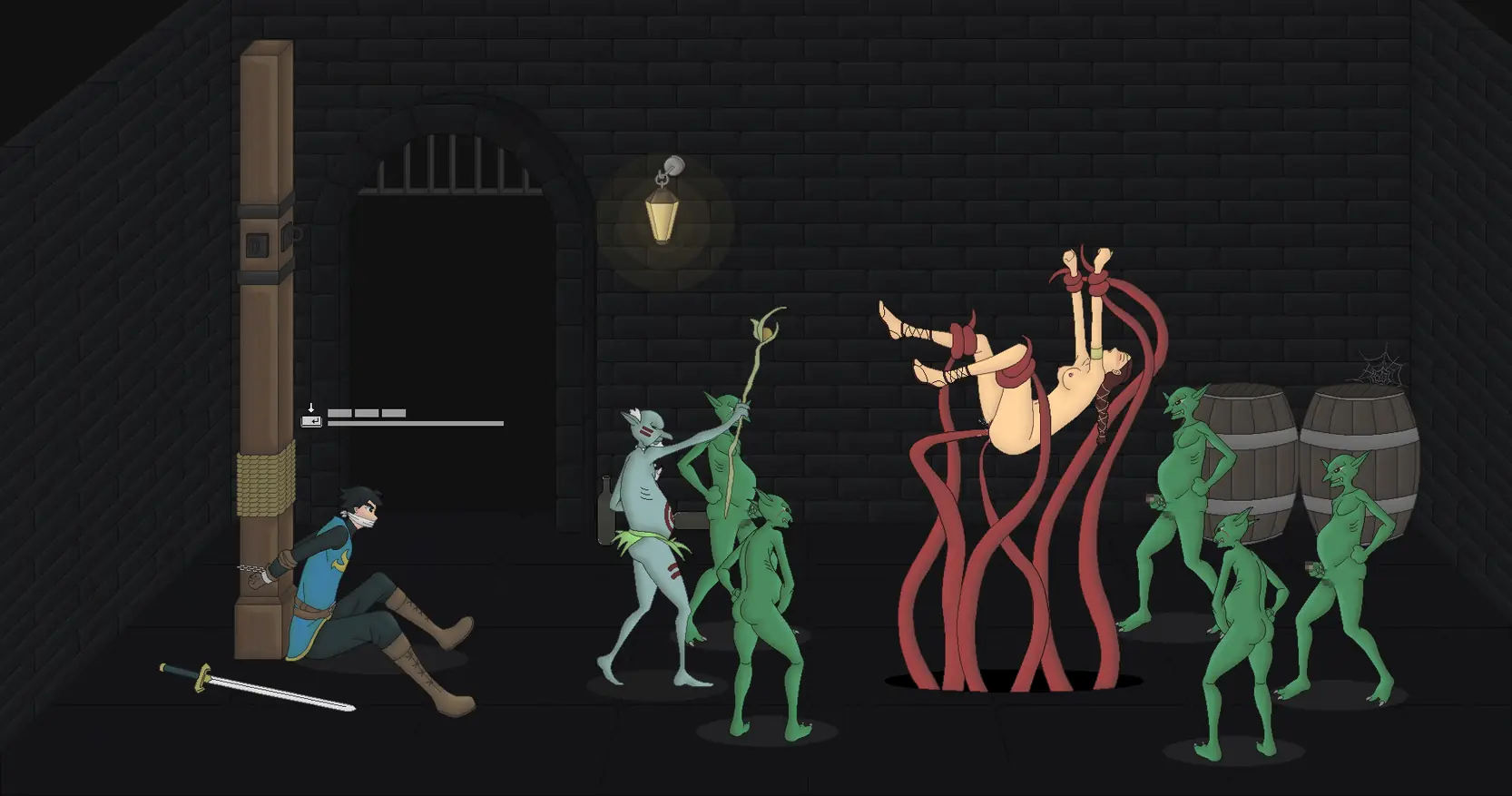 However, on the day of the wedding, the goblins invaded the castle seeking revenge. The king ordered you to escape with the princess through the dungeon while he and the soldiers held off the attackers.